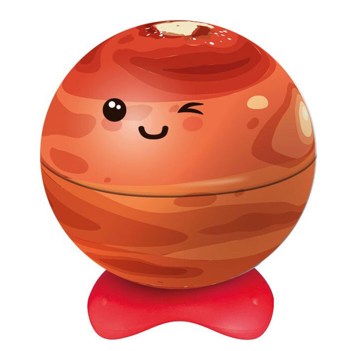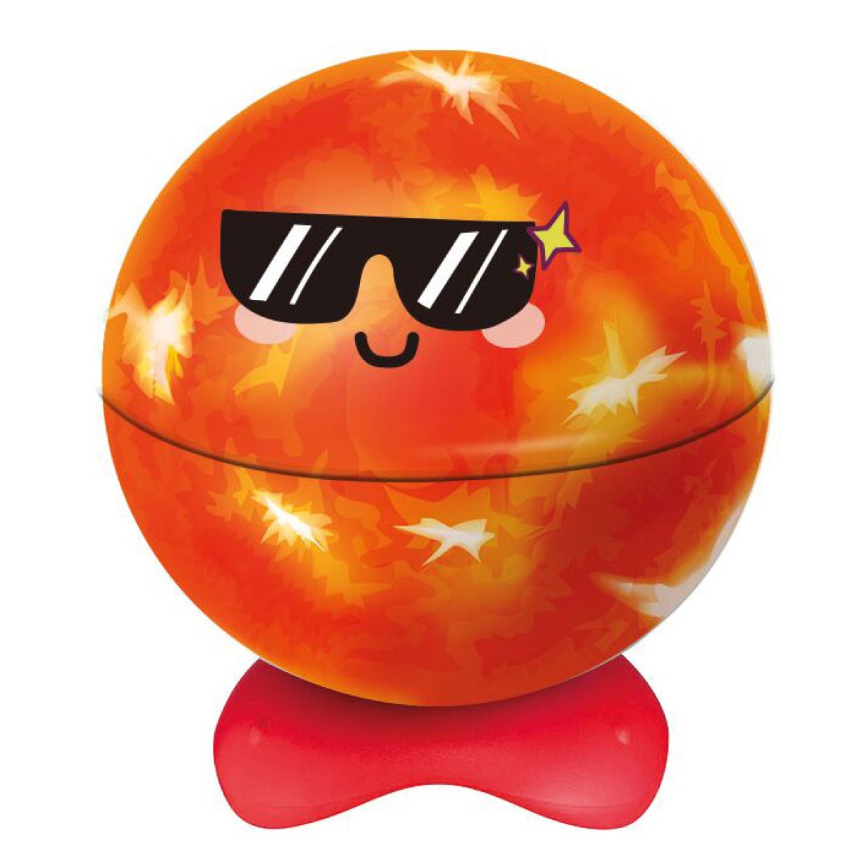 Design em formato de globo ou planeta que se abre ao rodar a parte inferior.