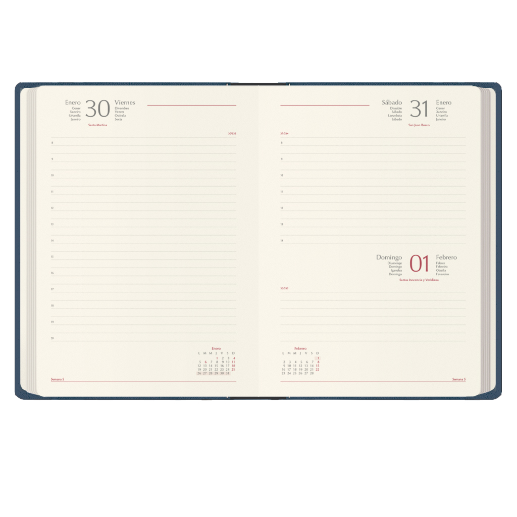 Home Agendas Anuais Agenda Dohe Diária - Melbourne – 15 x 21 cm. – Azul -25% Agenda Dohe Diária - Melbourne – 15 x 21 cm. – Azul 1 unidades em stock | SKU: 13204 | EAN: 8421938132045 20,24 € 26,99 € Desconto de 25%. IVA incluído. BLACK FRIDAY 2025 Desconto imediato de 6,75 € (25%) neste produto. Válido de 25 de Novembro de 2025 às 00:00 até 2 de Dezembro de 2025 às 23:30. Compre este produto e ganhe 40 Pontos! Saber mais Comprar Contactar Adicionar à wishlist Agenda anual. Capa feita de couro sintético com papelão acolchoado com costura lateral com fio BRANCO e pontas arredondadas. Estampagem a seco do ano. Encadernação costurada com tecido lombada com elástico para caneta e fecho de borracha plana na cor PRETA. Interior em papel offset de 80 gramas. Com certificado FSC misto. Marca Dohe Partilhar