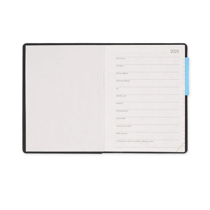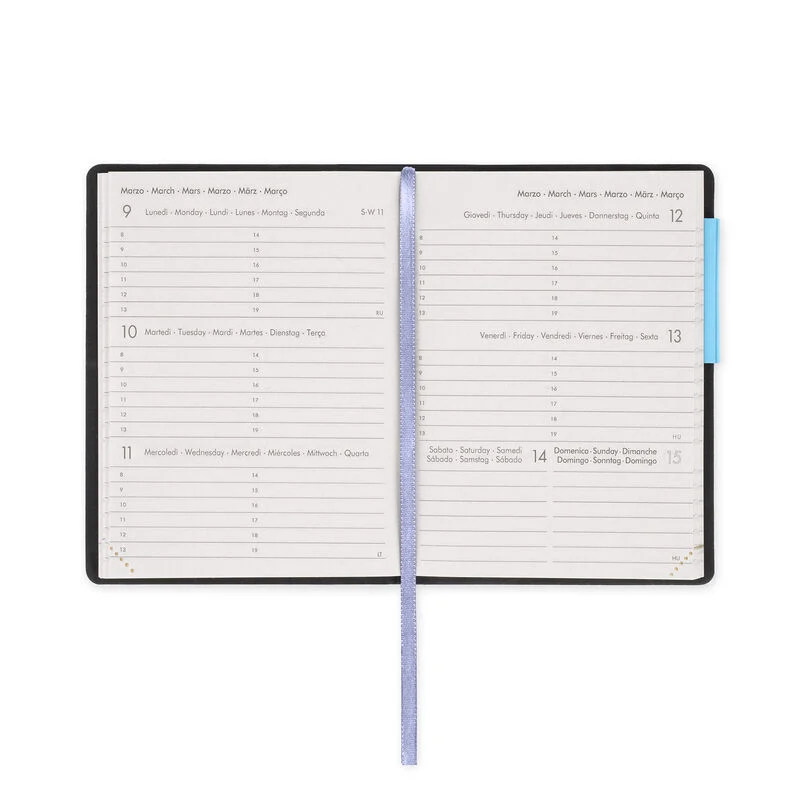128 páginas, cantos perfurados 6 idiomas (IT, EN, FR, ES, DE, PT) Planejador de férias e feriados internacionais Planejador mensal de 21 de janeiro de 2027 Livro de endereços Tamanho: 8 x 11 cm O artigo é certificado pelo FSC (FSC-C154586), proveniente de florestas bem gerenciadas, florestas certificadas pelo FSC e outras fontes controladas.