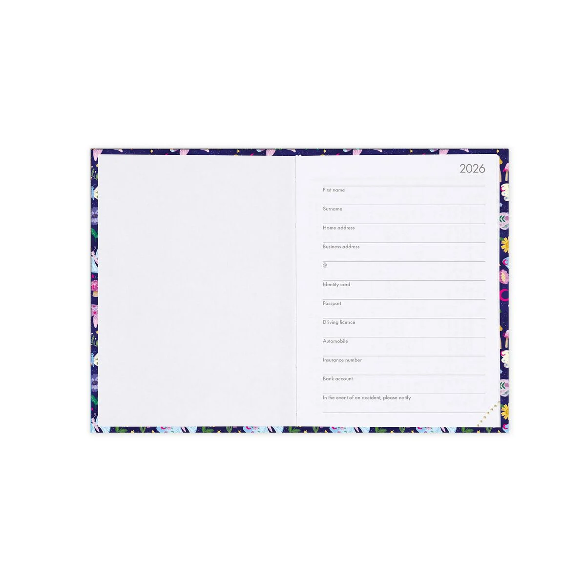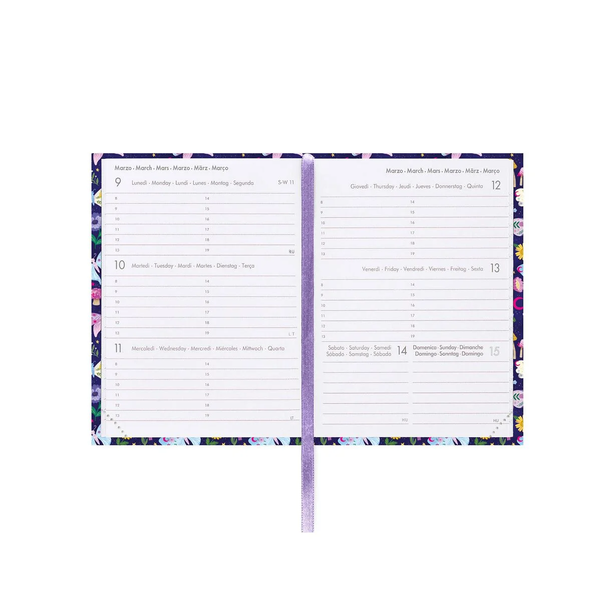 128 páginas, papel branco, cantos perfurados 6 idiomas (IT, EN, FR, ES, DE, PT) Planejador para férias e feriados internacionais Planejador mensal para janeiro de 2027 A rubrica Medidas: 8 x 11 cm Papel certificado FSC (FSC-C154586): proveniente de florestas bem geridas, florestas certificadas pelo FSC e outras fontes controladas