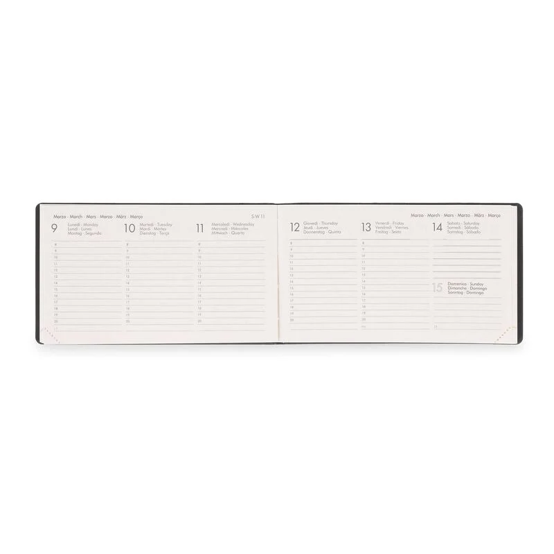 13 meses (janeiro de 2026 - janeiro de 2027) 160 páginas, cantos perfurados 6 idiomas (IT, EN, FR, ES, DE, PT) Planejador de férias e feriados internacionais 26 páginas mensais do planejador, 2 para cada mês Bolso de PVC na parte de trás Tamanho: 14 x 8 cm O artigo é certificado pelo FSC (FSC-C154586), proveniente de florestas bem gerenciadas, florestas certificadas pelo FSC e outras fontes controladas.