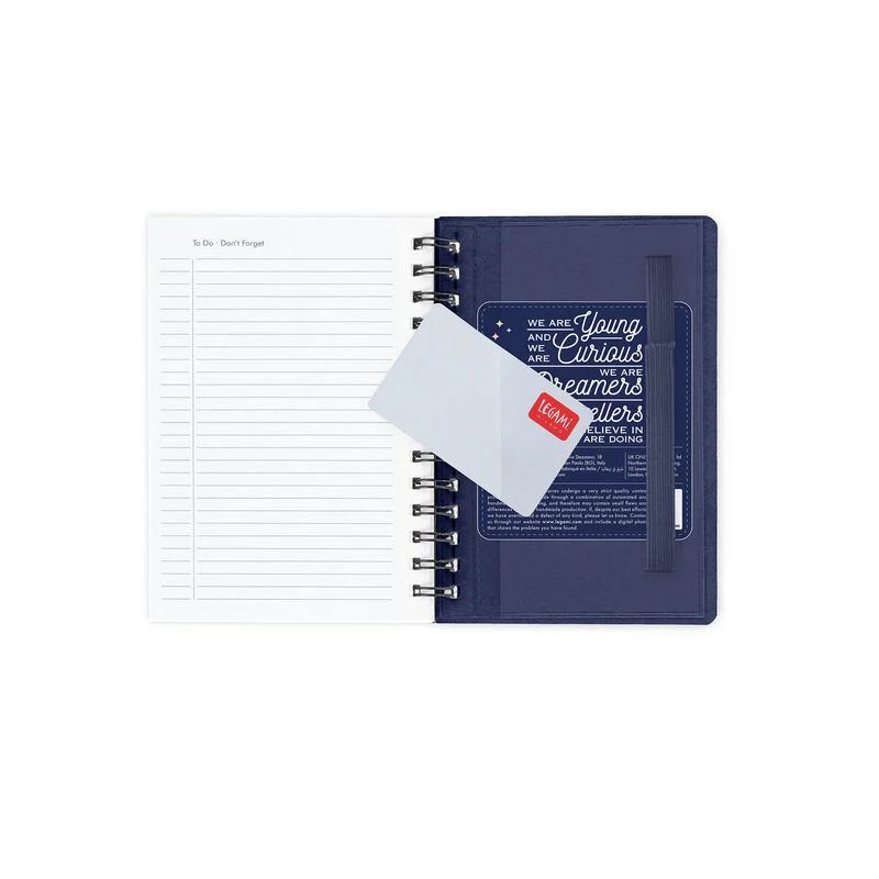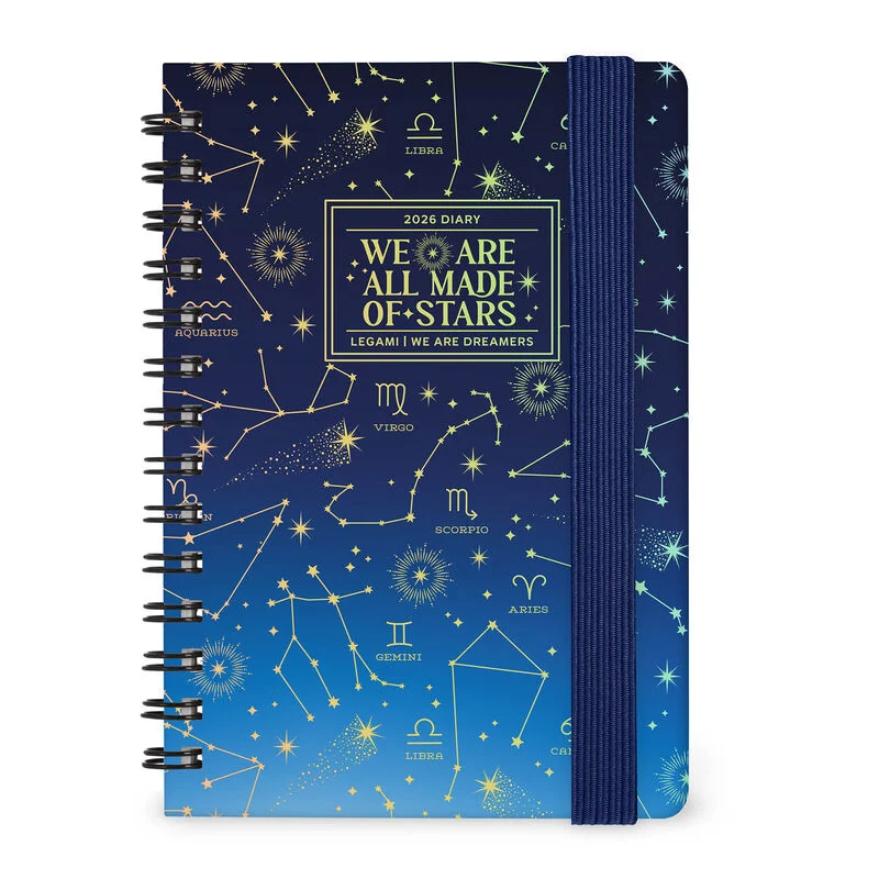 Seu corpo pode estar na escola ou no escritório, mas sua mente está entre as estrelas! Traga um pedacinho dos céus de volta à terra com você, graças ao Pequeno Diário Semanal Seca-Espiral - Estrelas de Legami. O design na capa compacta e dura mostra constelações brilhando no céu noturno, para ajudá-lo a navegar nos próximos 12 meses.