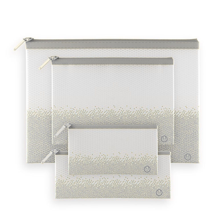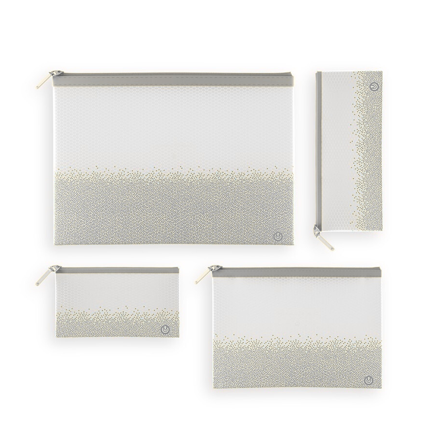 O zíper e o puxador de silicone correspondentes fornecem um toque de estilo e conveniência. Perfeito para organizar artigos de papelaria, maquiagem, acessórios de viagem, ou qualquer pequeno item pessoal.