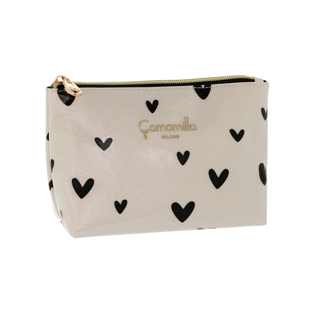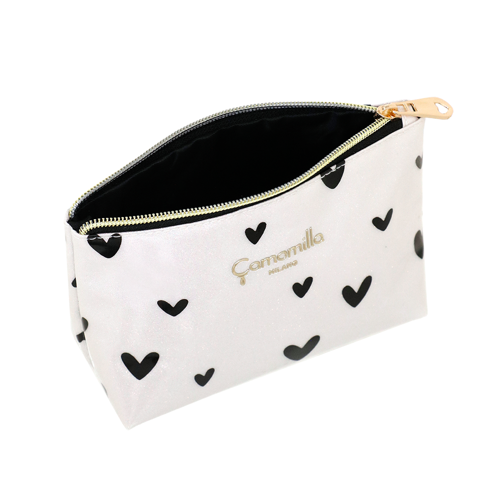 S LOVE ME ENVELOPE É perfeita para todos os seus produtos essenciais de maquiagem. Para ser colocado na sua bagagem de mão ou saco. Pode conter produtos de maquiagem, carregadores de bateria e pequenos carregadores de bateria. Love Me é uma coletânea que vai direto ao coração com sua energia e vivacidade. Imagine uma explosão de corações vermelhos sobre uma base de glitter dourado: uma linha de estojos de beleza e clutches que conseguem te deixar de bom humor à primeira vista. É impossível resistir a essa onda de alegria! Não há maneira melhor de começar o dia do que com um sorriso largo, e seu ritual matinal de cuidados com a pele se torna instantaneamente especial. Mas Love Me não para por aí. Para quem prefere uma variante mais delicada, há uma segunda versão da linha, caracterizada por corações pretos que se destacam contra uma base branca de glitter. Uma verdadeira explosão de doçura e refinamento que torna cada detalhe único. A coleção é desenvolvida em diferentes formatos, projetados para atender a todas as necessidades: desde clutchs práticos e versáteis, ideais para manter no banheiro ou para sempre carregar com você para um retoque de última hora, até estojos de beleza de vários tamanhos, todos elegantes e funcionais.