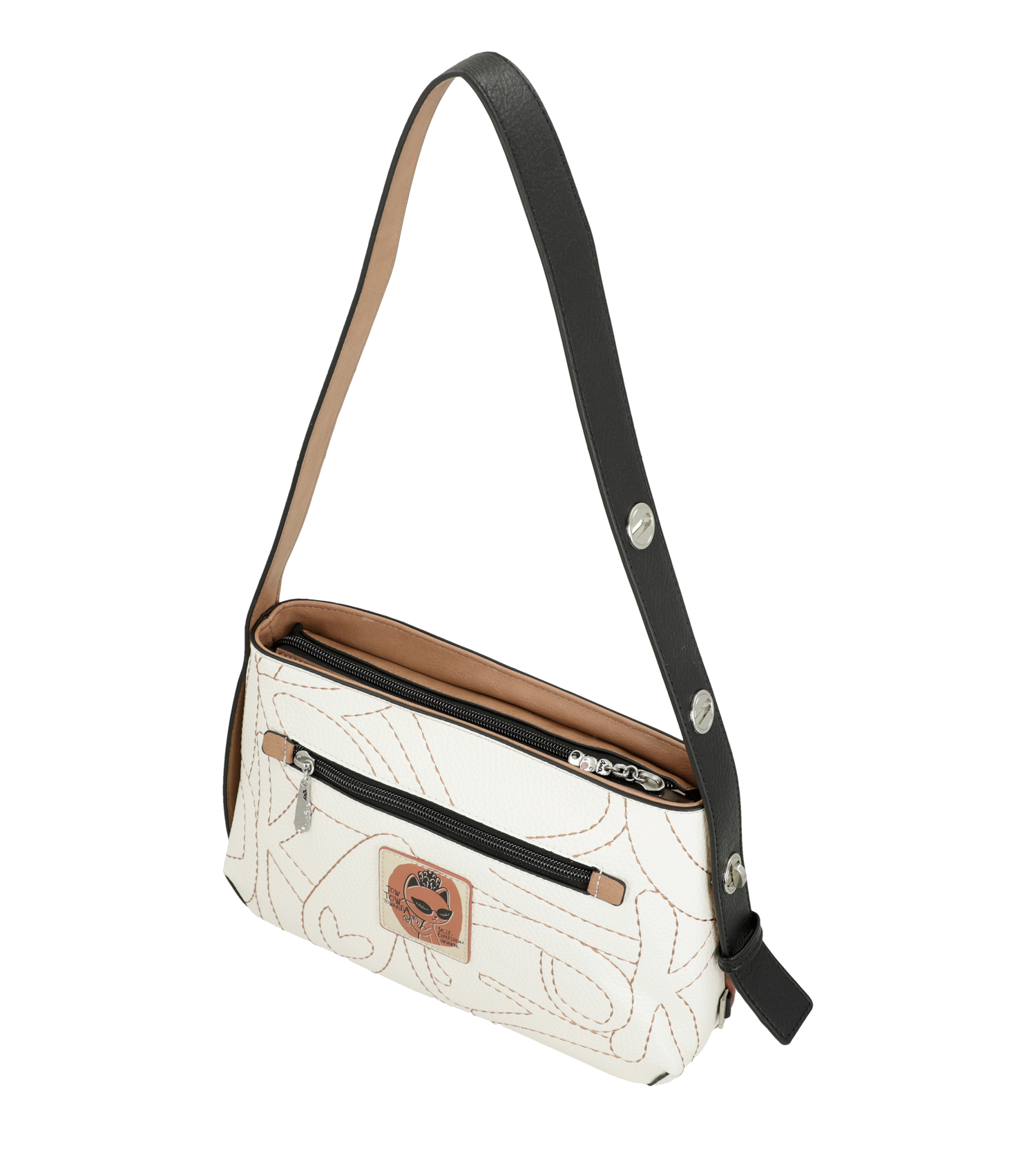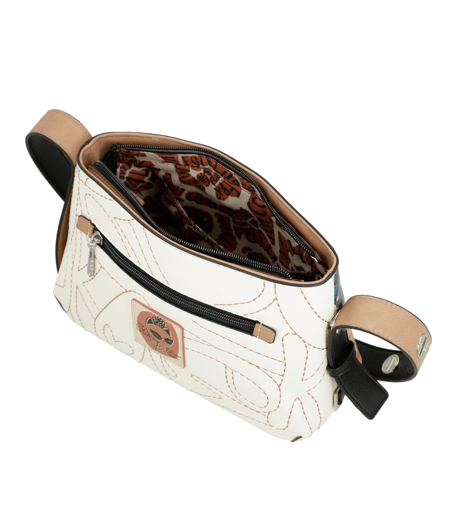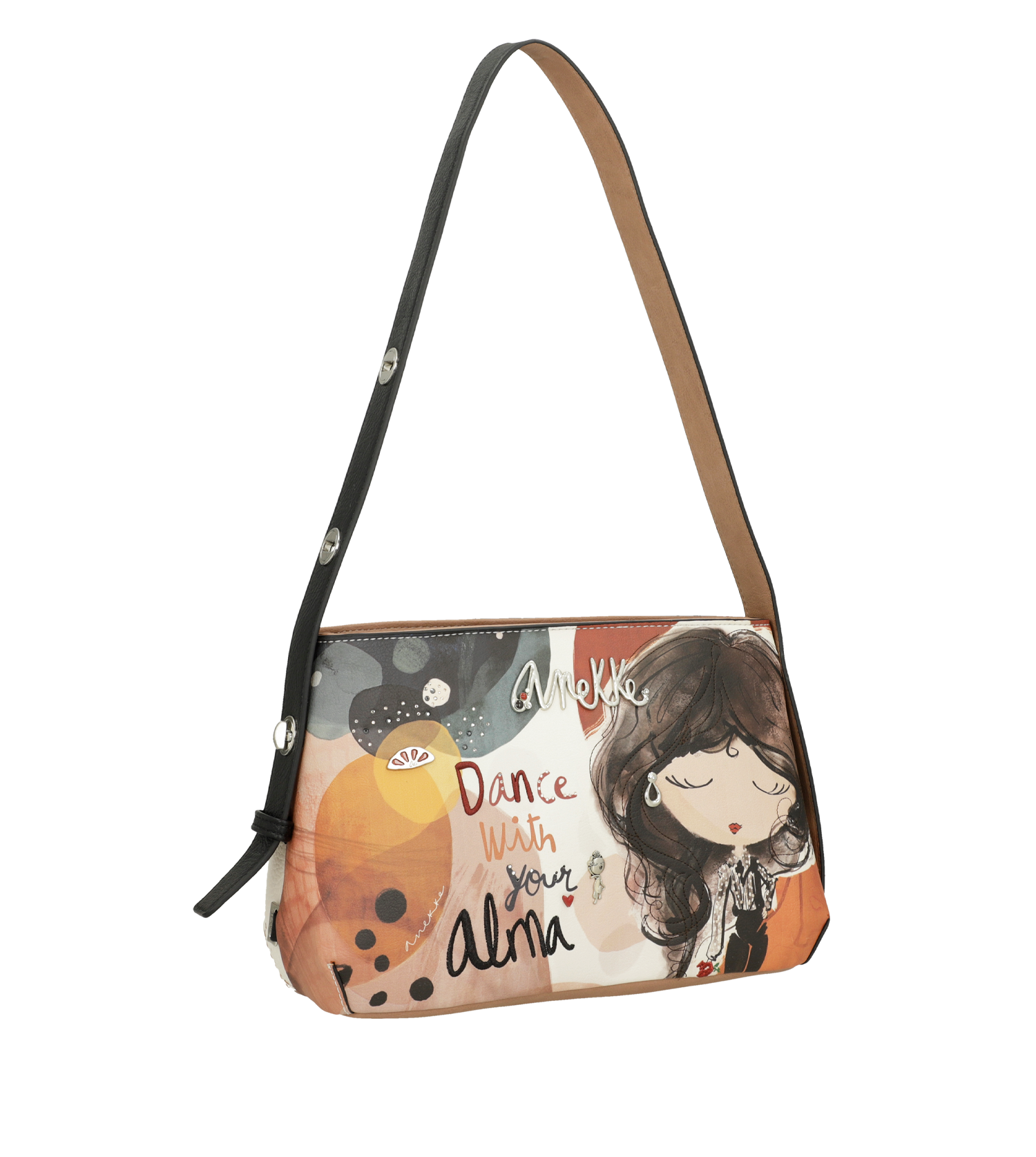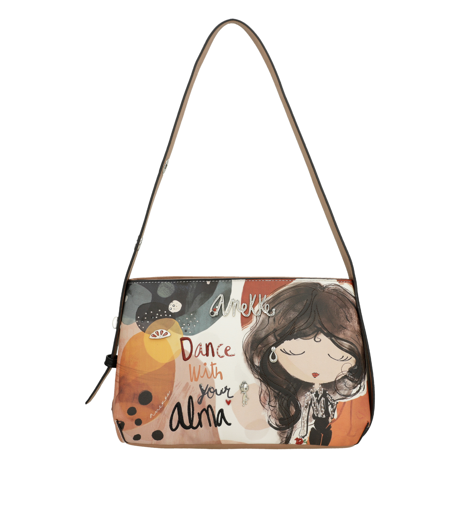Esta bolsa de ombro original de tamanho médio possui uma alça de ombro. Possui fechamento por zíper, com grande capacidade interna, além de bolsos e forro. Também possui um bolso na parte externa traseira. É, sem dúvida, uma homenagem ao país que viu Anekke crescer. Porque há jornadas que são feitas com a alma, e esta começa no país que Anekke chama de lar.
