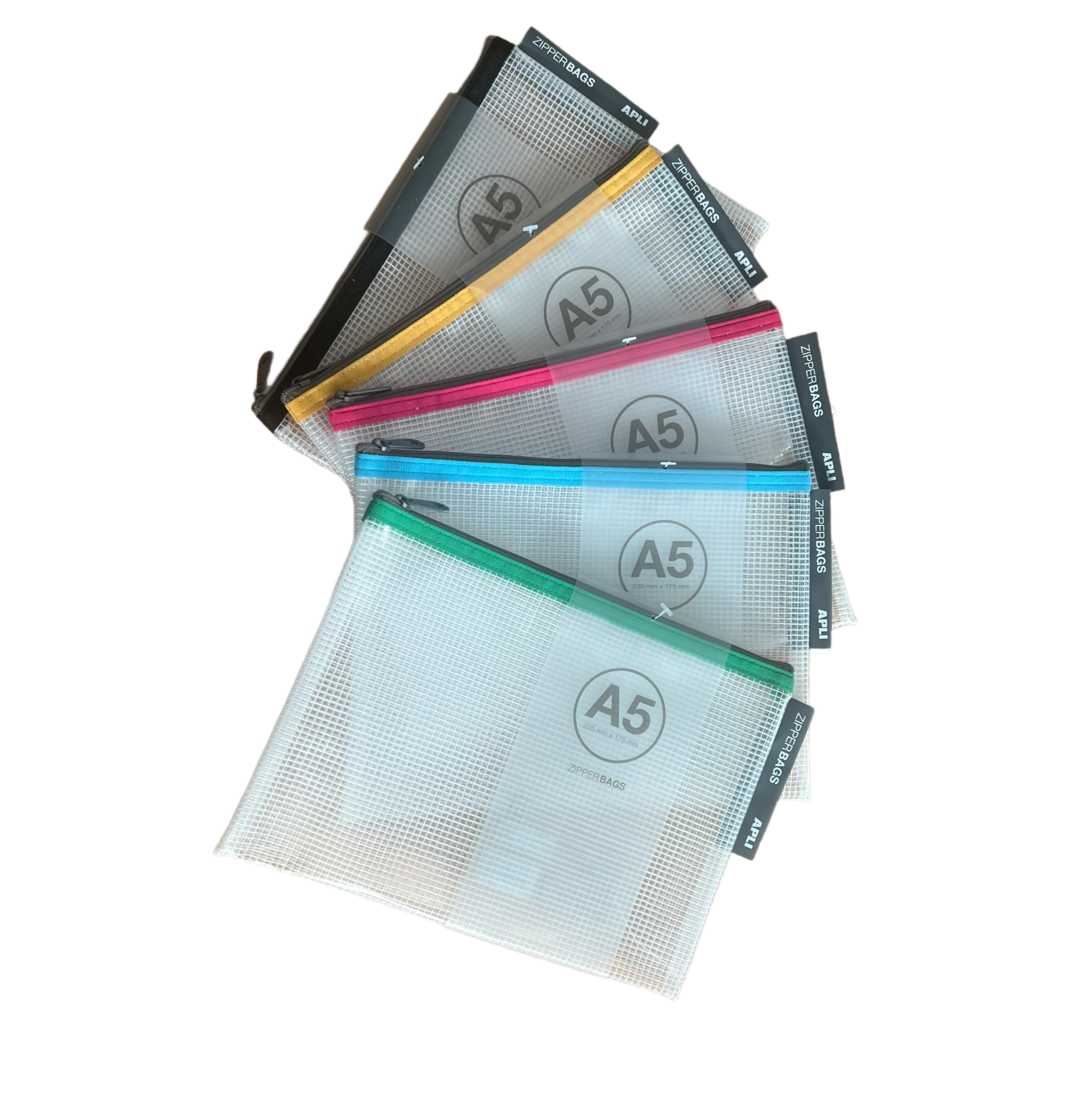 Existem em 5 cores variadas: amarelo, rosa, verde, azul e preto.