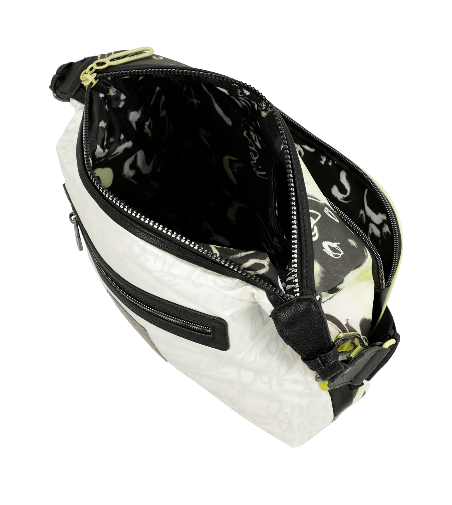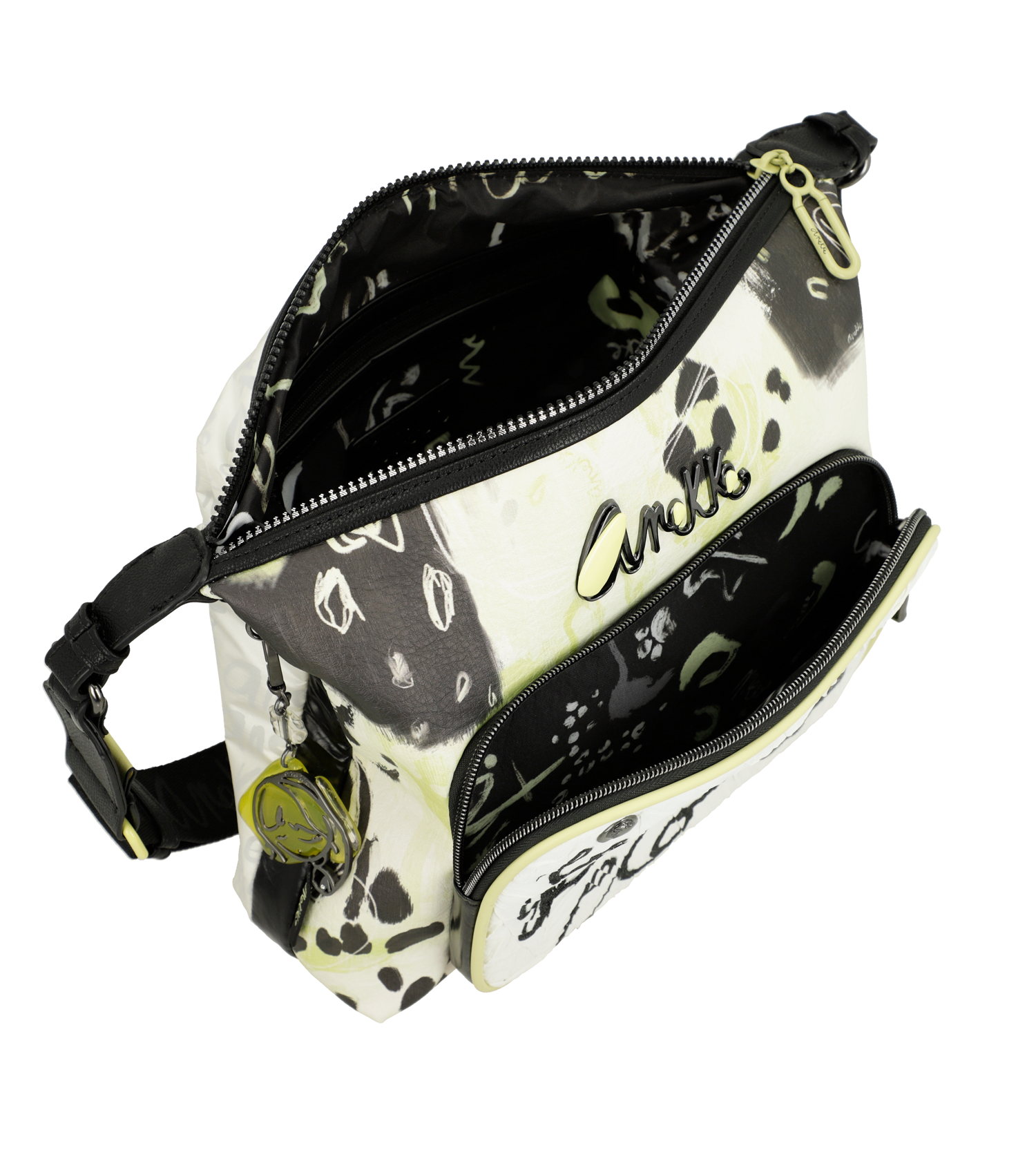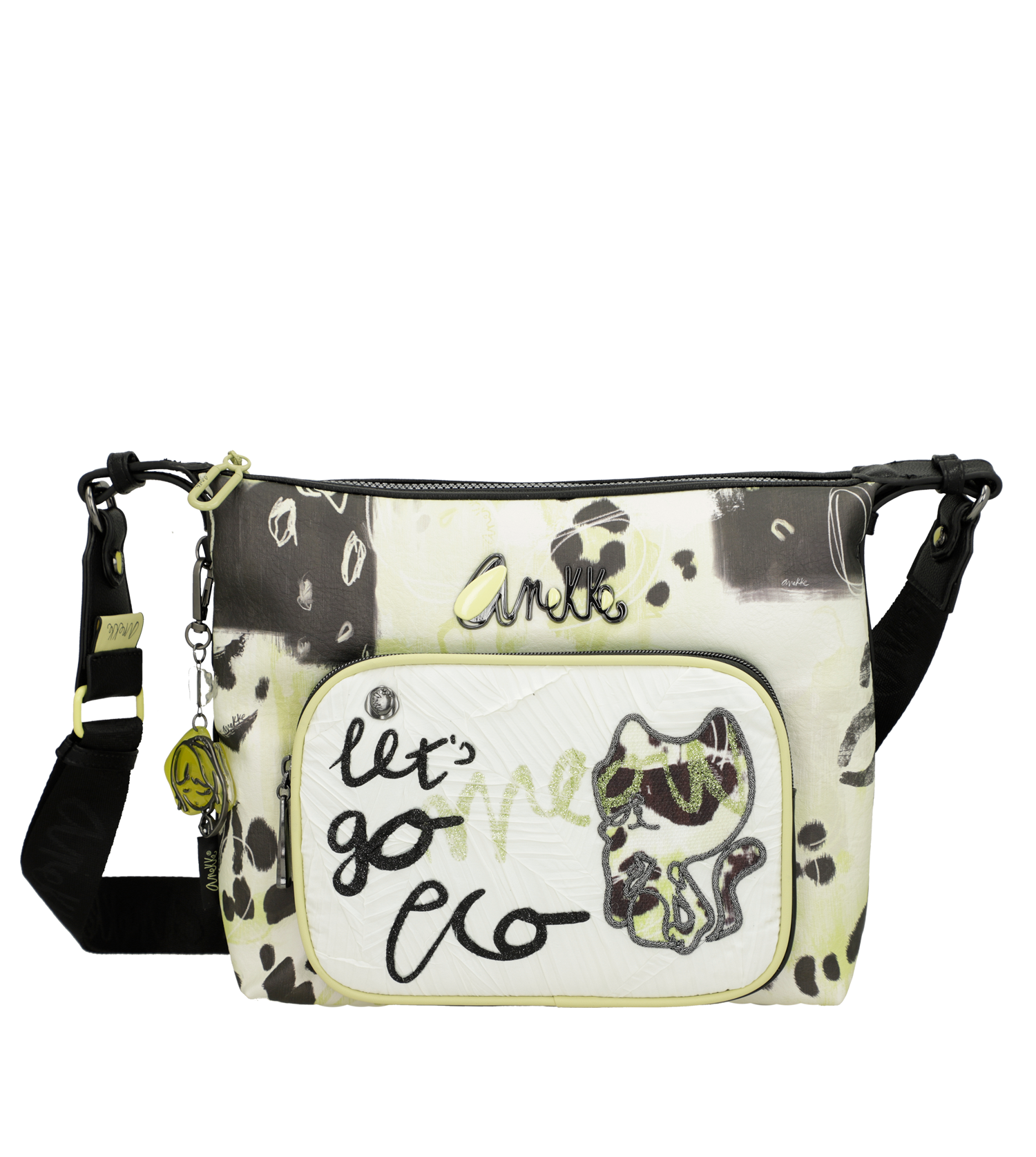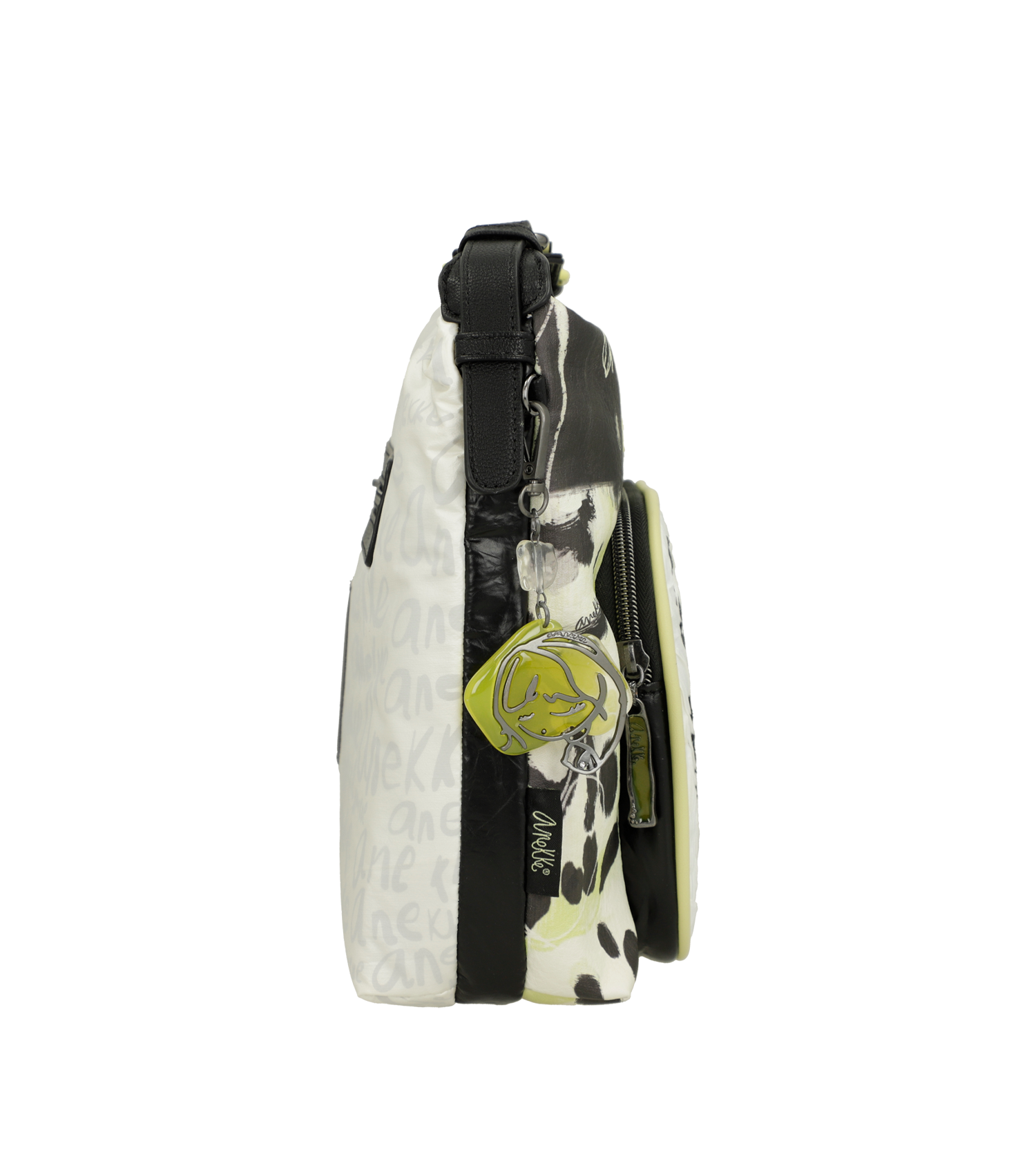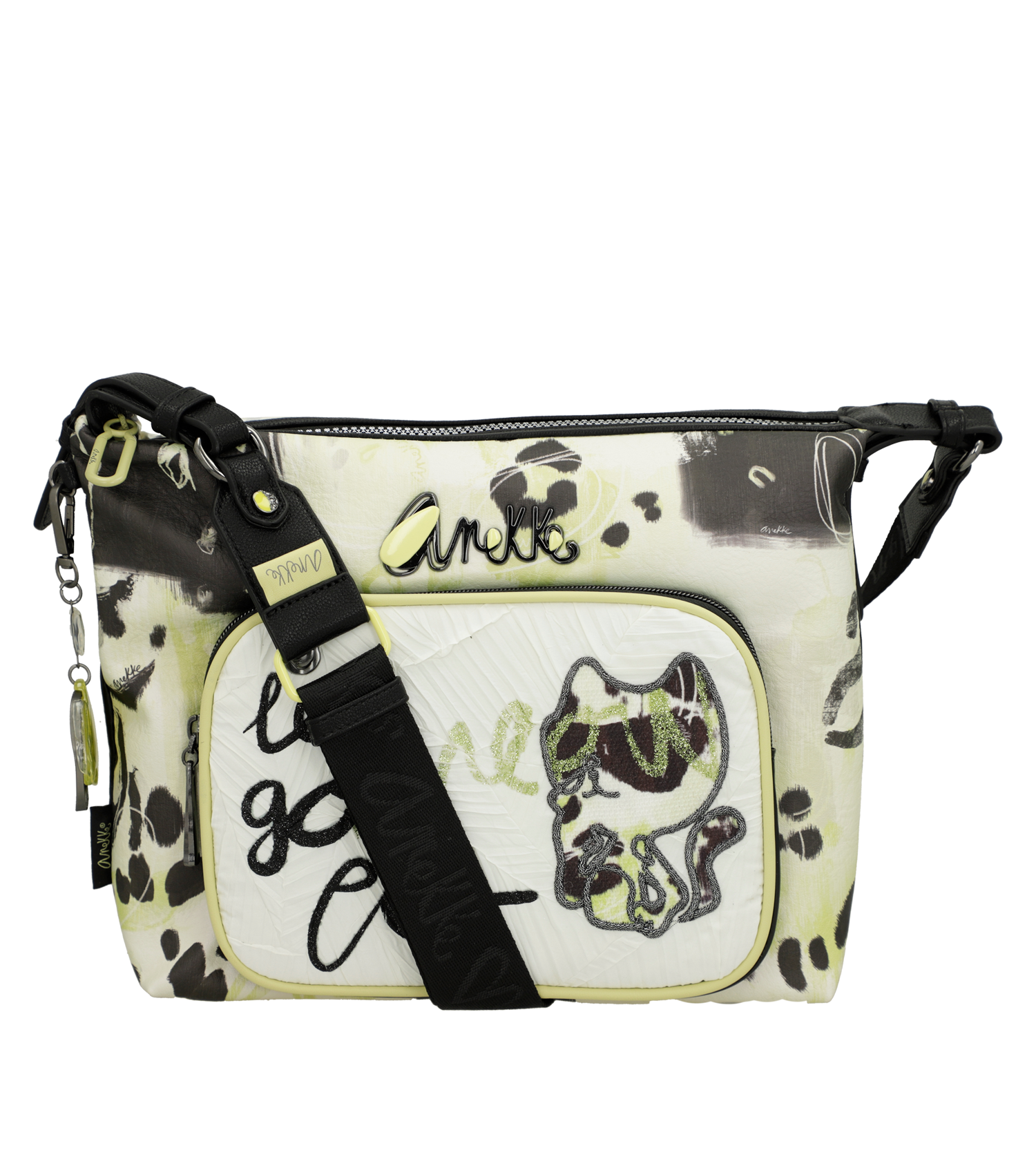A cápsula Nature Towanda faz parte da coleção Anekke Memories. Towanda, a gatinha de Anekke, tem sido sua companheira de viagens e aventuras por todos esses anos, e é por isso que ela se tornou a estrela desta coleção original, perfeita para amantes de gatos e acessórios com um estilo bem urbano. Cada produto desta cápsula foi feito com 80% de material reciclado e 100% de amor pelo Planeta, e tem o selo Control Union Certifications BV.Esta cápsula se caracteriza pelo conforto de cada produto, feito com materiais flexíveis, perfeitos para o uso diário. Seu design combina uma base branca com formas abstratas estampadas, inspiradas na silhueta de Towanda, e toques originais em tons fluorescentes. Esta bolsa de ombro é grande e tem bolsos na frente e atrás. O interior é forrado e tem bolsos. A alça é uma alça de ombro que pode ser ajustada em diferentes comprimentos, perfeita para adaptá-la à altura que você preferir. E você ainda está pensando nisso? Compre já o seu novo favorito da Anekke Towanda, você vai adorar! Miau!