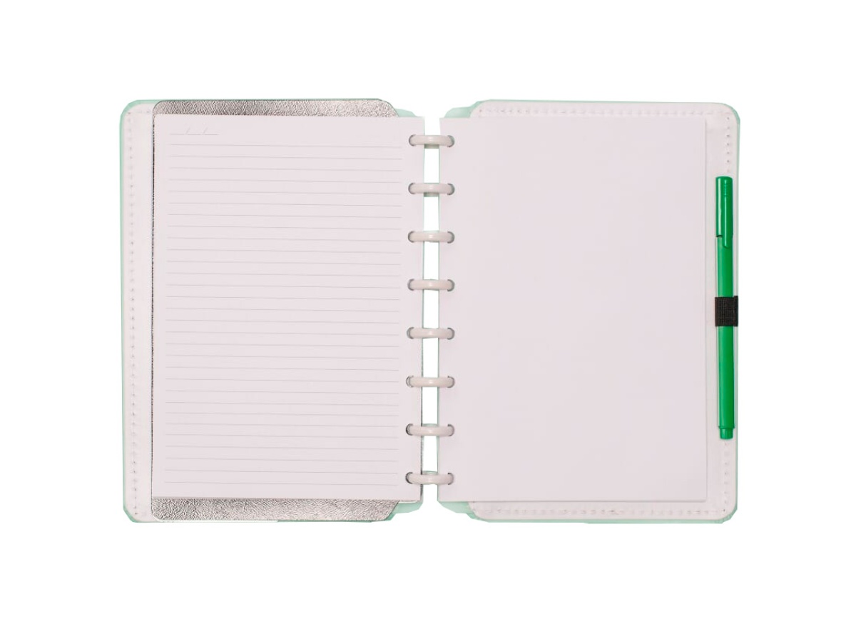 O caderno que tiras e colocas as folhas quando quiseres! O Caderno Inteligente Verde Pastel no formato A5, da coleção Tons Pastel, tem espaço para as tuas anotações e até para dar asas à imaginação, só tens de escolher por onde começar. Leva-o para onde quiseres e regista todas as tuas ideias.