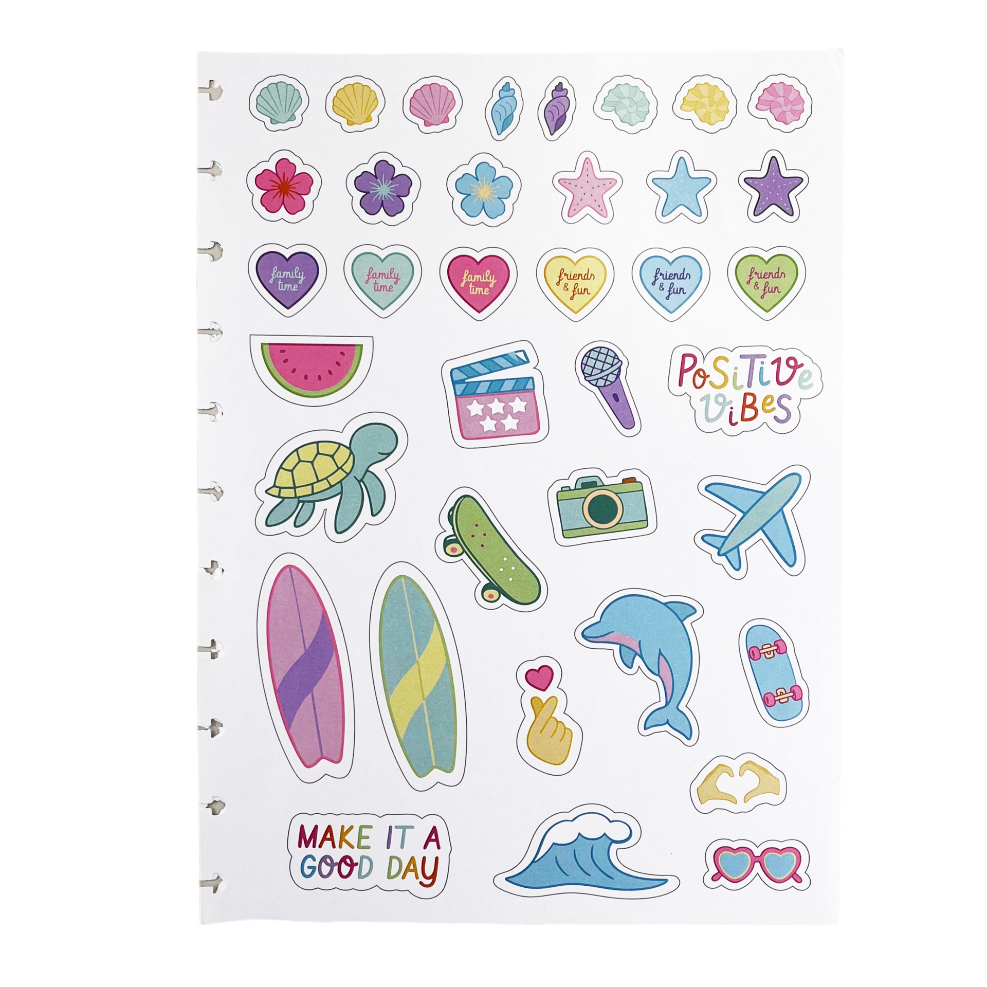 Inclui: 1 folha de adesivos desenhados pelainfluencer 1 bolsa plástica 1 folha de instrução de uso e manuseio 1 folha de identificação com calendário 4 divisórias com abas para identificação 80 folhas offset 90g (60 folhas pautadas e 20 folhas lisas brancas para impressão) 1 suporte com elástico para 1 caneta