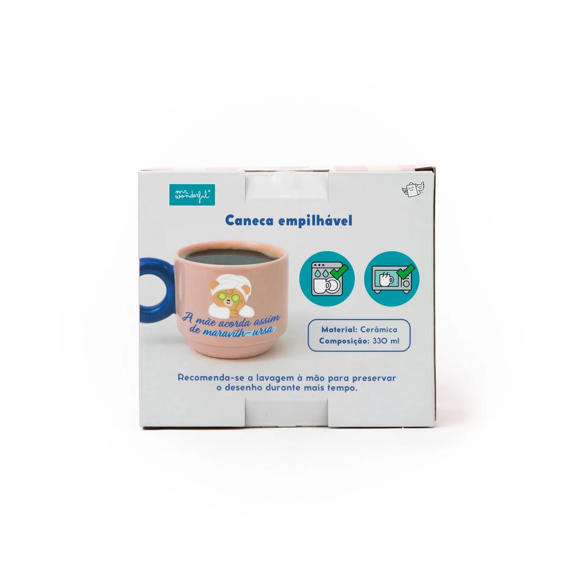 Caneca de cerâmica com um molde que permite empilhá-la verticalmente com a caneca da coleção do Dia da Mãe, embora, claro, isso não seja imprescindível. Capacidade: 330 ml.