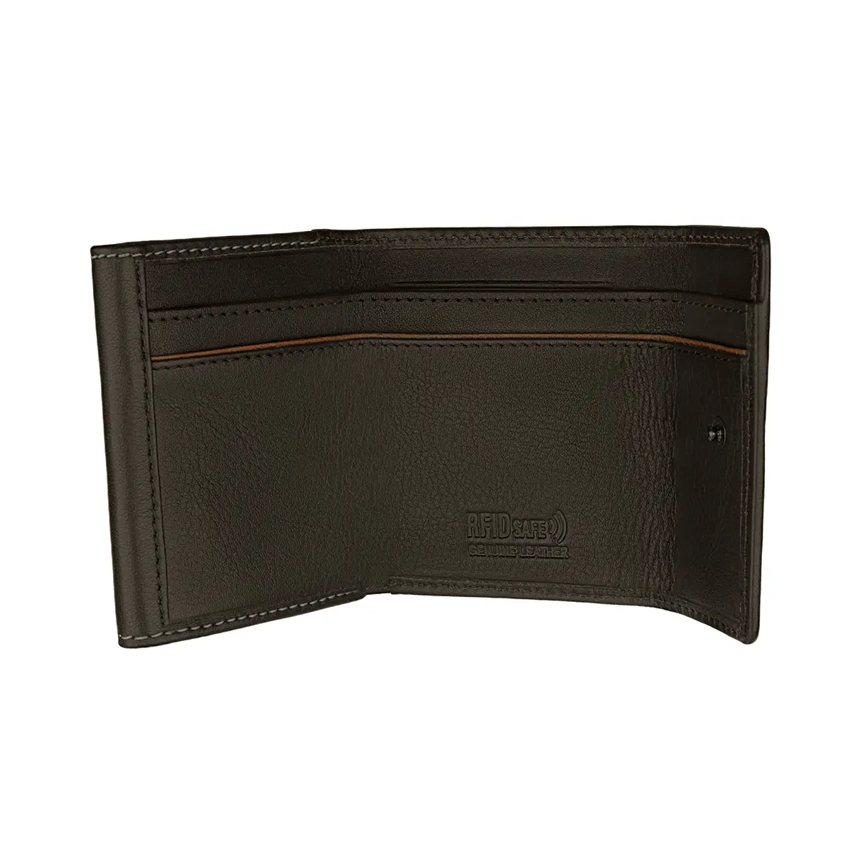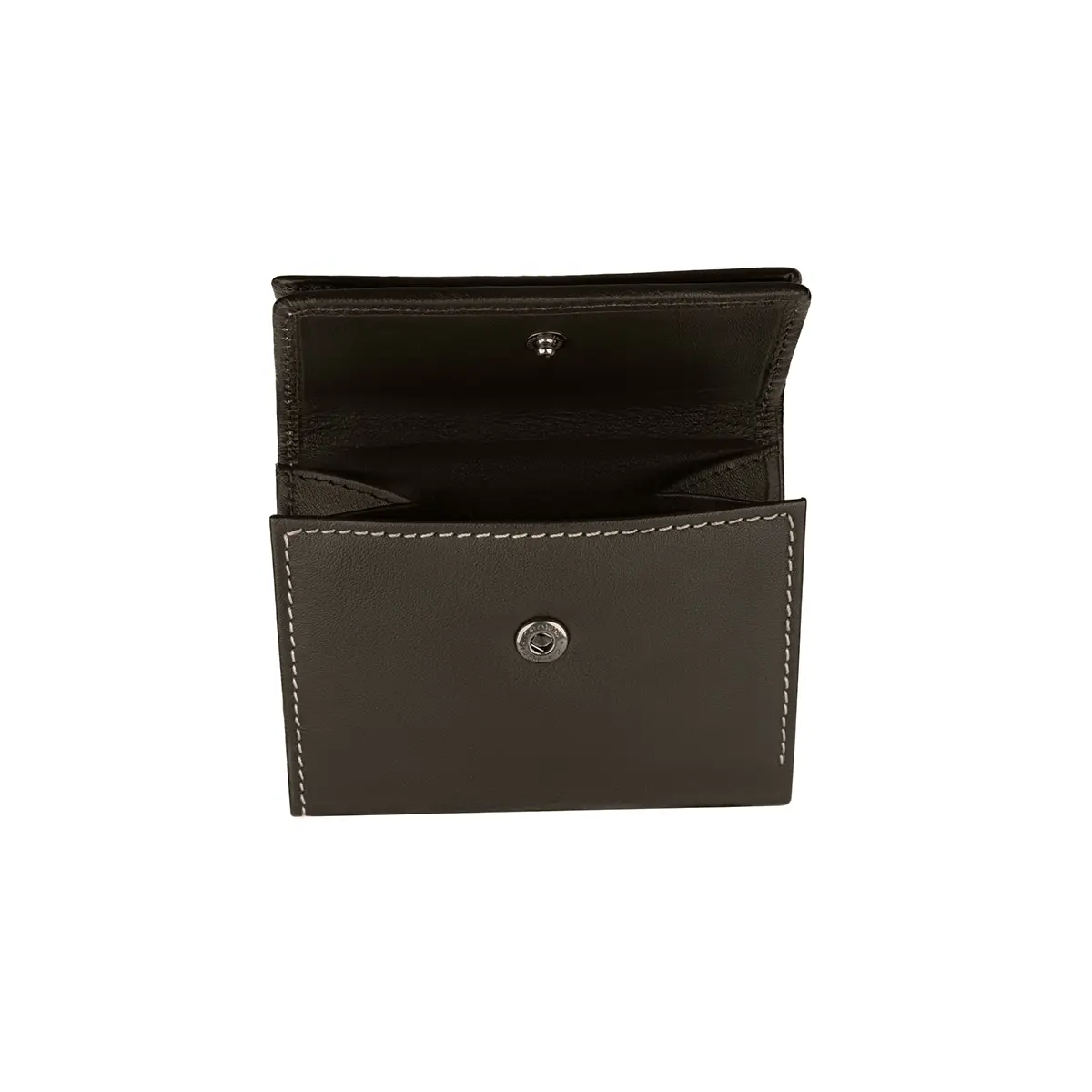 Carteira pequena em pele com proteção anti-RFID e bloqueio NFC. Contém 2 compartimentos para notas, 1 compartimento para cartões (tipo crédito) e porta-moedas. Coleção Elite.