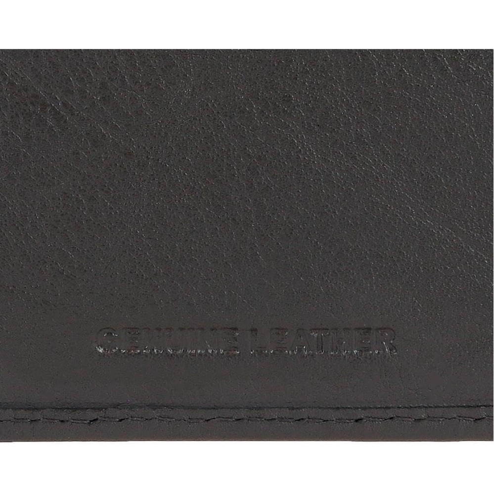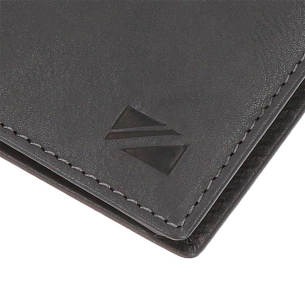 Carteira de 11 cm x 8 cm x 1 cm fabricada em pele.