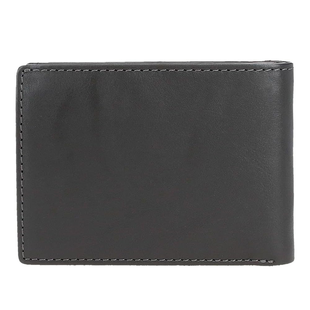Possui seis ranhuras para guardar cartões, um compartimento para o DNI e um espaço independente para as notas.