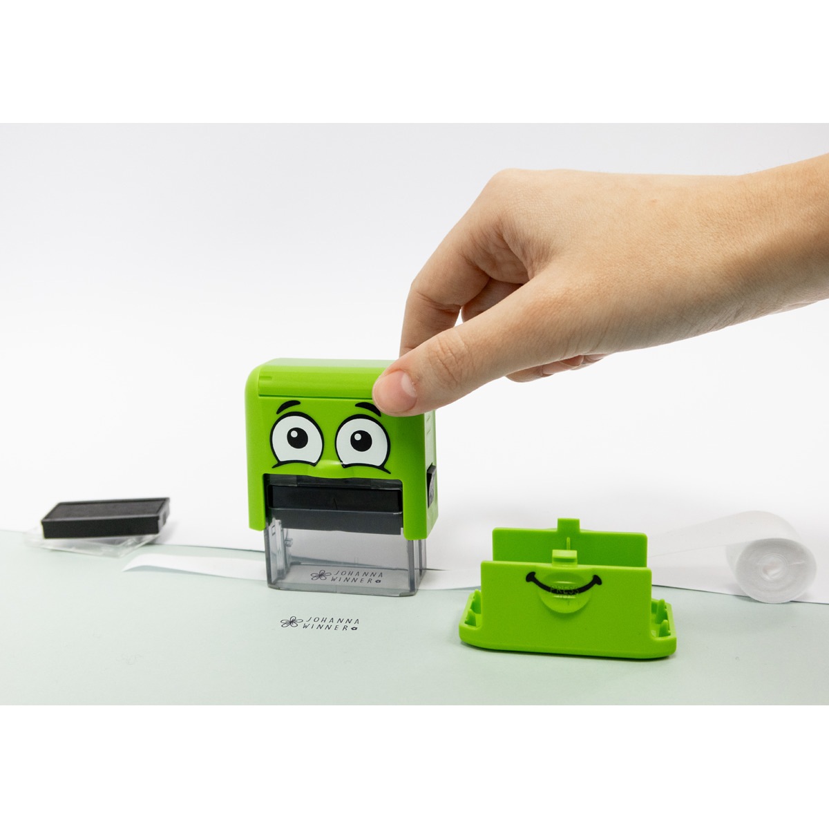 - Fácil de utilizar: O carimbo foi concebido para ser facilmente manuseado, mesmo por crianças mais velhas, promovendo a sua independência.