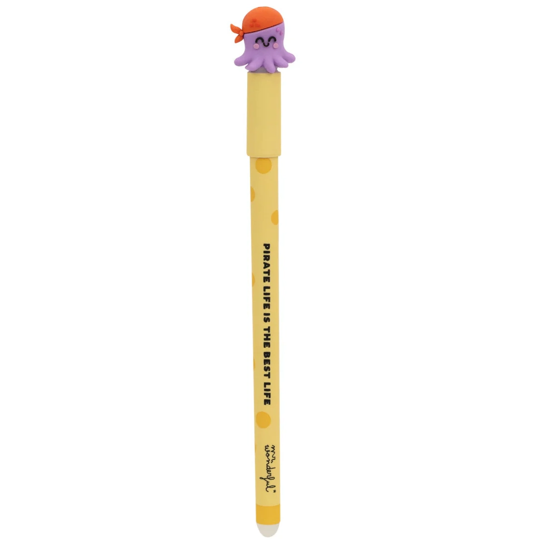 Caneta apagável Bo-Bo com um divertido polvo pirata Mr. Wonderful numa ponta.