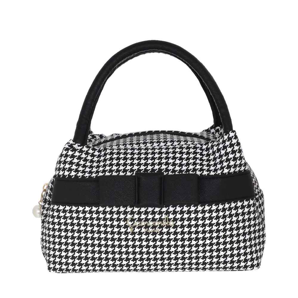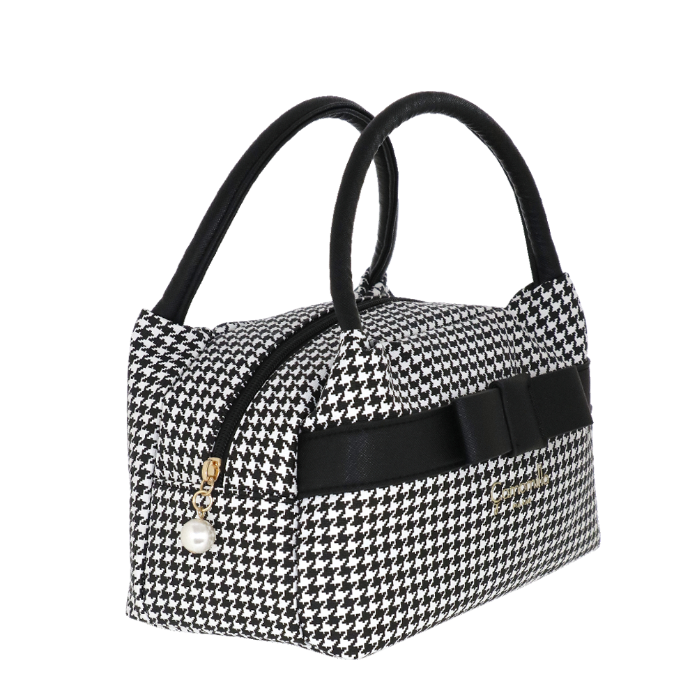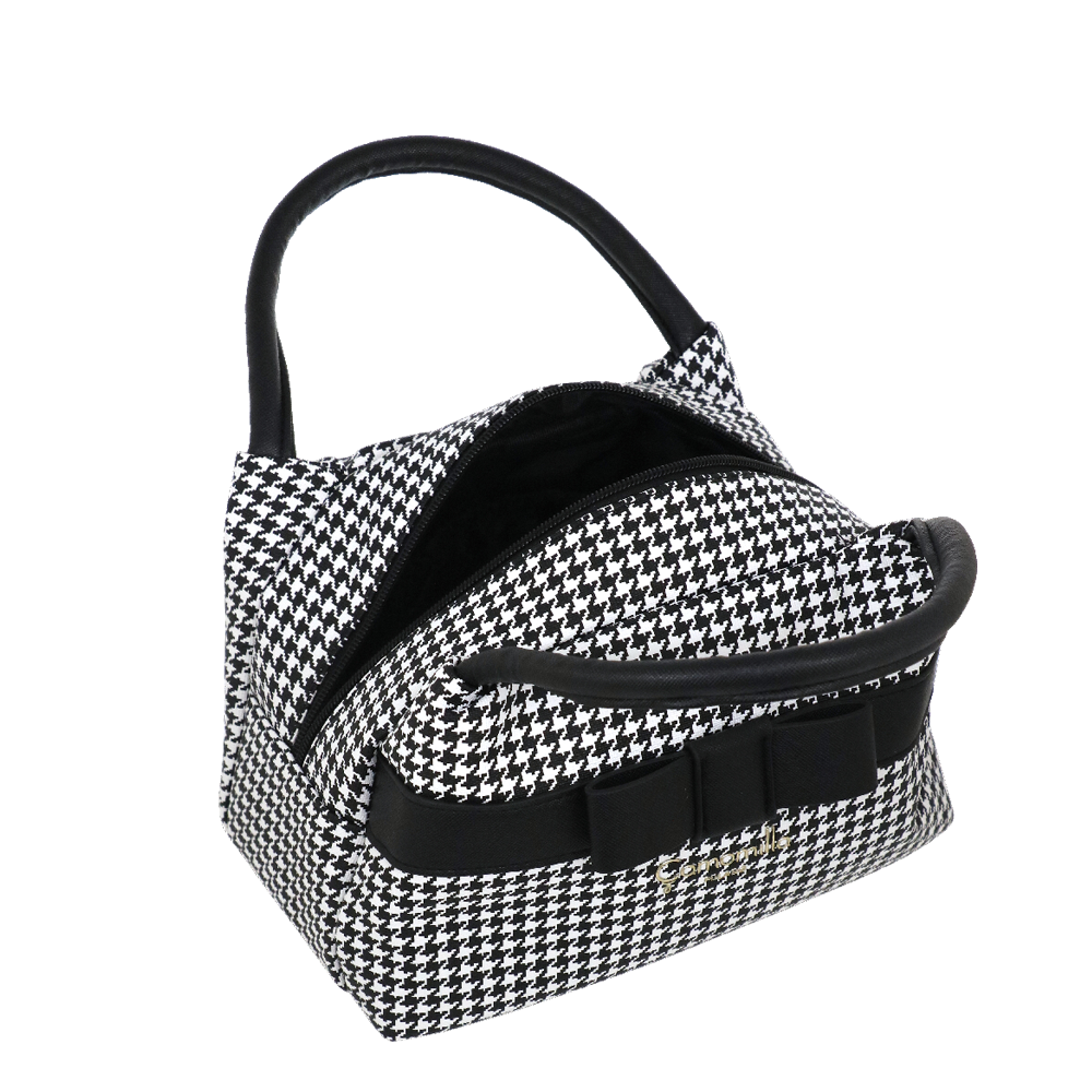 Pode conter: maquiagem, perfumes e loções de tamanho padrão. O Pied-de-Galo é um clássico atemporal da alfaiataria, capaz de se renovar temporada após temporada sem perder seu charme. Também neste inverno, esse padrão icônico está de volta aos holofotes, mais romântico do que nunca. Reinventamos esse motivo clássico imprimindo-o em couro sintético para criar uma linha única de bolsas e clutchs para higiene. Para adicionar um toque de romance, cada peça é adornada com um elegante laço preto Saffiano PU, perfeito para quem ama um estilo refinado e feminino.