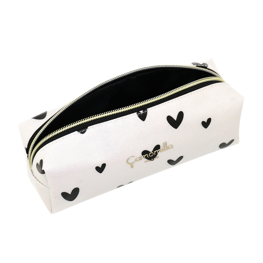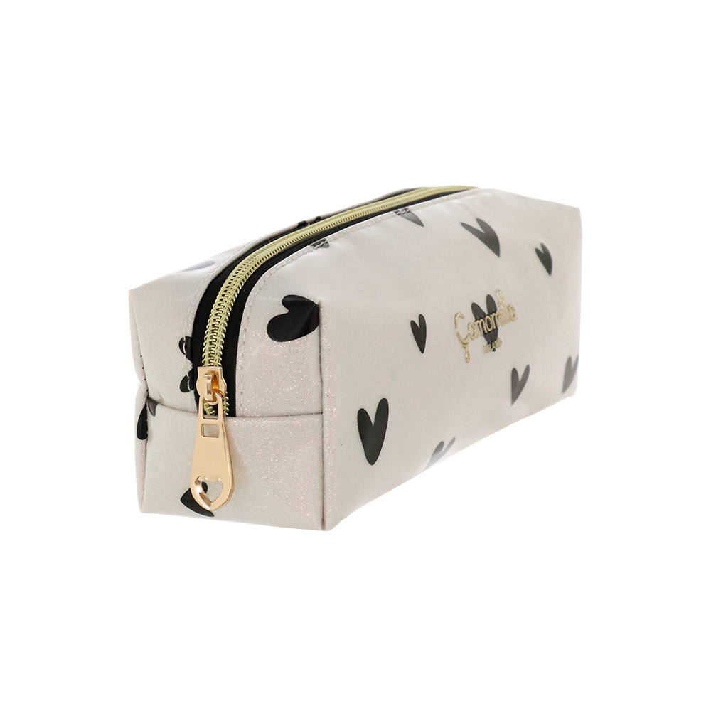 A S LOVE ME CASE realmente multiuso pode ser usada para pincéis, mas também para lápis, lábios, delineador e batom. Love Me é uma coletânea que vai direto ao coração com sua energia e vivacidade. Imagine uma explosão de corações vermelhos sobre uma base de glitter dourado: uma linha de estojos de beleza e clutches que conseguem te deixar de bom humor à primeira vista. É impossível resistir a essa onda de alegria! Não há maneira melhor de começar o dia do que com um sorriso largo, e seu ritual matinal de cuidados com a pele se torna instantaneamente especial. Mas Love Me não para por aí. Para quem prefere uma variante mais delicada, há uma segunda versão da linha, caracterizada por corações pretos que se destacam contra uma base branca de glitter. Uma verdadeira explosão de doçura e refinamento que torna cada detalhe único. A coleção é desenvolvida em diferentes formatos, projetados para atender a todas as necessidades: desde clutchs práticos e versáteis, ideais para manter no banheiro ou para sempre carregar com você para um retoque de última hora, até estojos de beleza de vários tamanhos, todos elegantes e funcionais.