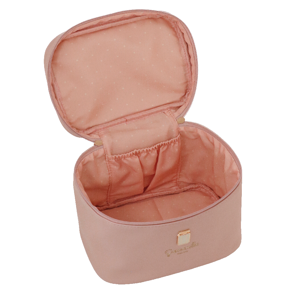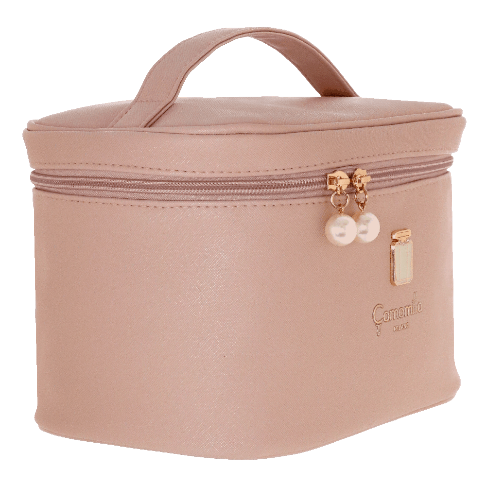 ESTOJO DE BELEZA M MADAME A linha se distingue por um sofisticado rótulo de metal em forma de frasco de perfume. Esta linha está disponível em uma paleta de cores refinadas: rosa delicado, um elegante azul Tiffany e o inevitável preto clássico.... A etiqueta metálica, acabada com mestria e precisão, acrescenta um toque de luxo e distinção a cada peça, evocando a imagem de um perfume fino, símbolo de estilo e requinte. A escolha de cores, do rosa suave ao azul claro e ao preto profundo, oferece opções para todas as ocasiões, permitindo combinar a bolsa clutch com looks do dia a dia e looks de noite.... Estas clutches não são apenas esteticamente agradáveis, mas também práticas e duráveis, ideais para quem procura combinar funcionalidade e elegância. Quer você a coloque em uma bolsa inteligente ou em uma bolsa de escritório, a bolsa clutch Madame irá acompanhá-lo adicionando um toque de classe à sua roupa. Prepare-se para chamar a atenção e definir seu estilo elegante. Em couro sintético com efeito saffiano e interiores estampados às bolinhas, pura elegância