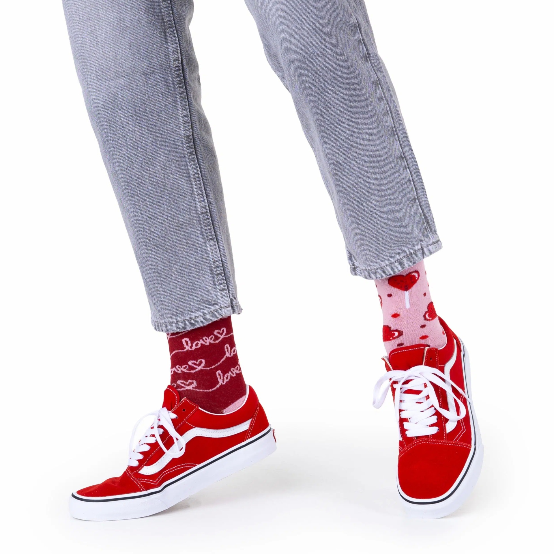 Nossas meias de coração são perfeitas não só para quem está apaixonado. Eles vão se adequar para quem procura sua parceira ou para quem está absolutamente feliz consigo mesmo. Muitas meias Mornings são feitas para todos os públicos, não importa se você prefere usar meias de animais em vez de meias de comida, se prefere quadrúpedes a bípedes, répteis a anfíbios, no fim todos ficam felizes conosco! Tristeza e azar são palavras desconhecidas, porque é difícil encontrar alguém que não goste de duas meias coloridas e descombinadas. Não podemos esquecer que meias de coração são um elemento incomparável do nosso guarda-roupa. Eles vão se encaixar perfeitamente em qualquer festa – especialmente no baile de Dia dos Namorados – em qualquer feriado e qualquer ocasião. O rosa e vermelho das nossas meias combinam perfeitamente com o branco e o azul-marinho. Não espere, você nunca sabe quando vai encontrar seu parceiro, coloque meias de coração e deixe o Cupido atirar no seu coração. O amor vale tudo!