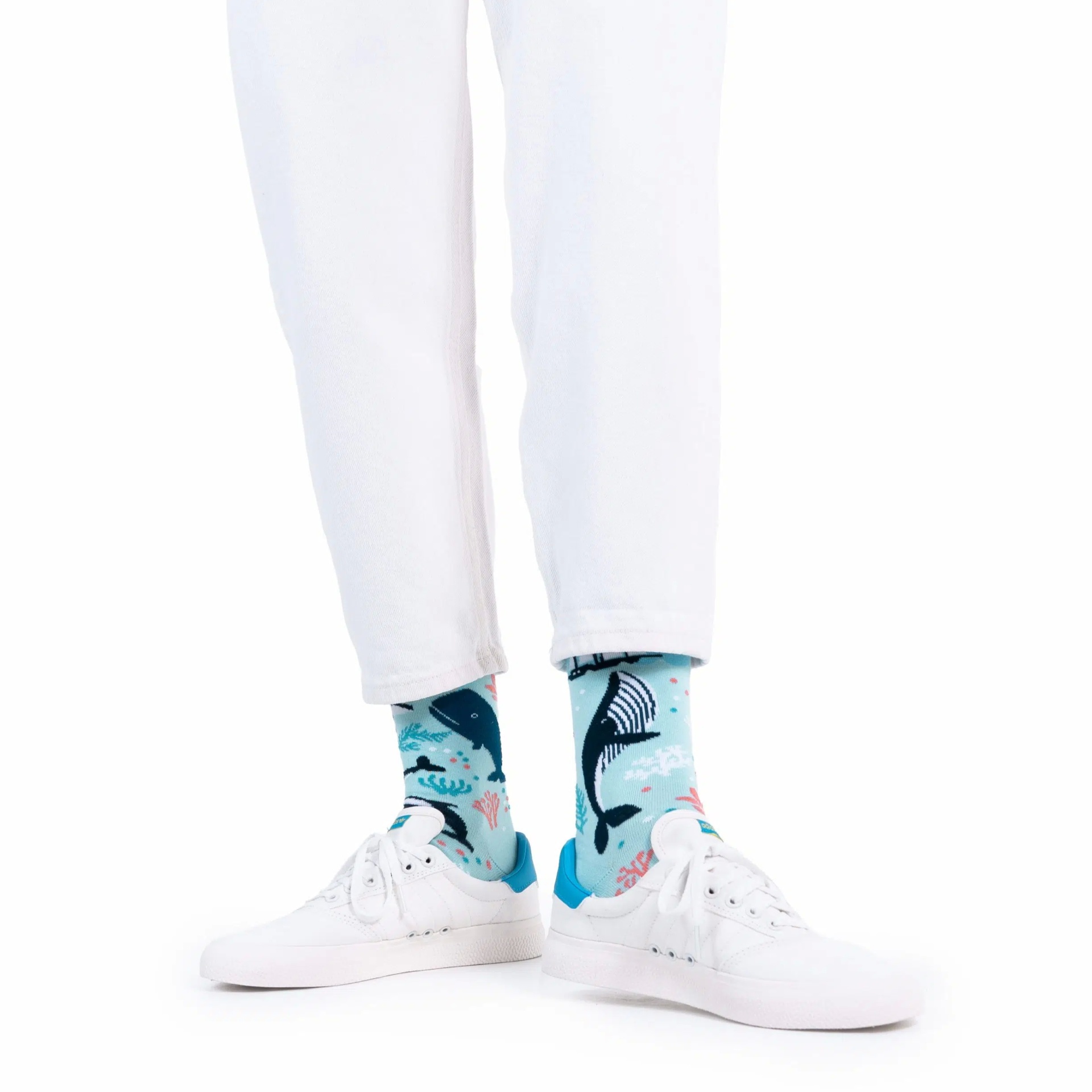 Existem designs na gaveta de meias Many Mornings, como nossas meias de baleia, onde você realmente não tem escolha. Isso porque os majestosos mamíferos marinhos atraem a atenção. Embora você não as encontre exatamente entre nossas meias de inverno, nossas meias para baleias são adequadas para todas as estações, porque a temporada de baleias é o ano todo, com baleias-jubarte do Hemisfério Sul e do Hemisfério Norte viajando pelas costas. Se você gosta de experimentar o oceano na superfície e sente falta da sensação dos raios de sol na pele, provavelmente vai preferir meias havaianas. Esses são perfeitos para usar depois de um longo dia de surfe entre as ondas! As meias de baleia, por outro lado, mergulham em um mundo desconhecido sob a superfície da água. Qualquer um que já saiu com um tanque de oxigênio e roupa de mergulho sabe do que estamos falando: recifes de coral brilhantes, peixes coloridos e um toque ocasional de magia. Fãs de sereias se identificam!