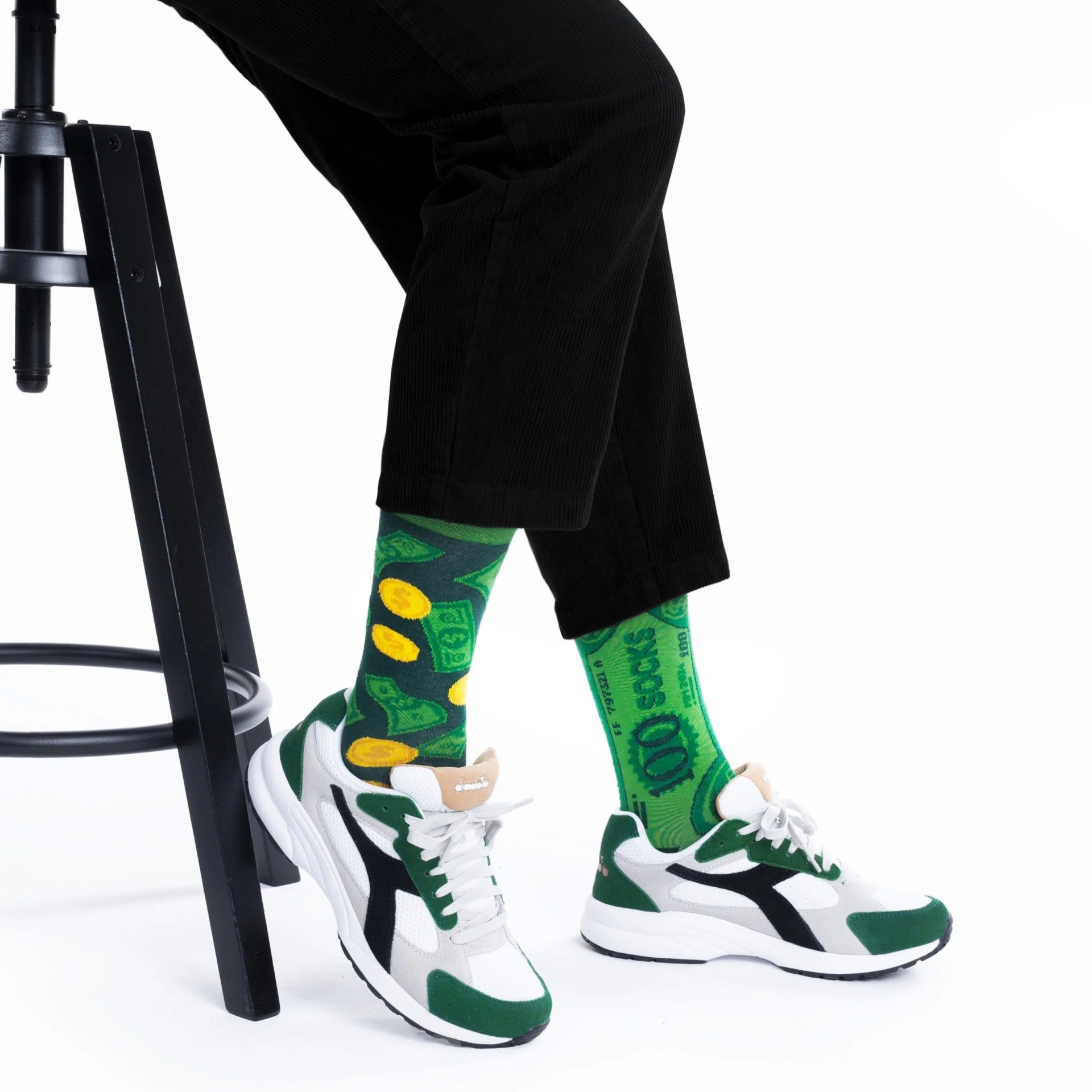 Em algum momento da vida, provavelmente todo mundo foi questionado "o que você faria se ganhasse um milhão de dólares?" Bem, a resposta é simples - "Eu compraria meias de dinheiro", porque embora elas não paguem as contas, elas vão deixar sua alma mais rica, e o que é melhor do que a sensação de que você está literalmente andando SOBRE DINHEIRO? Afinal, dinheiro não cresce em árvores, mas sim em meias! No entanto, se você não consegue tirar a música "I want to be a millionaire" da cabeça e está ávido por notas de dólar, provavelmente vai gastar esses dinheiro em carros caros usando meias de carro ou em um passeio romântico de balão usando meias de balão. Seja você jogando cara ou coroa, meias de dólar vão te fazer se sentir rico o tempo todo e você não precisará se preocupar com o saldo da sua conta bancária.