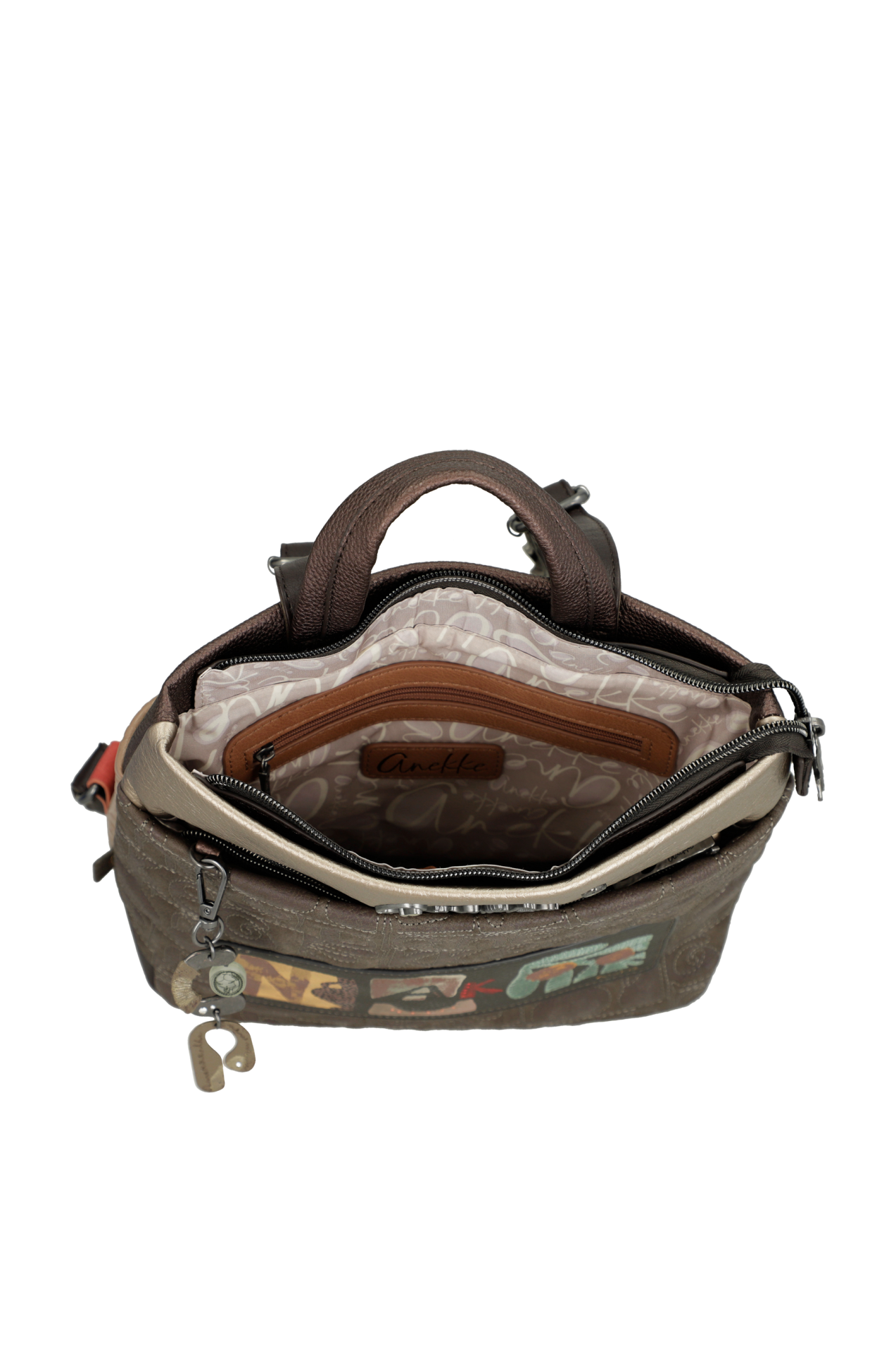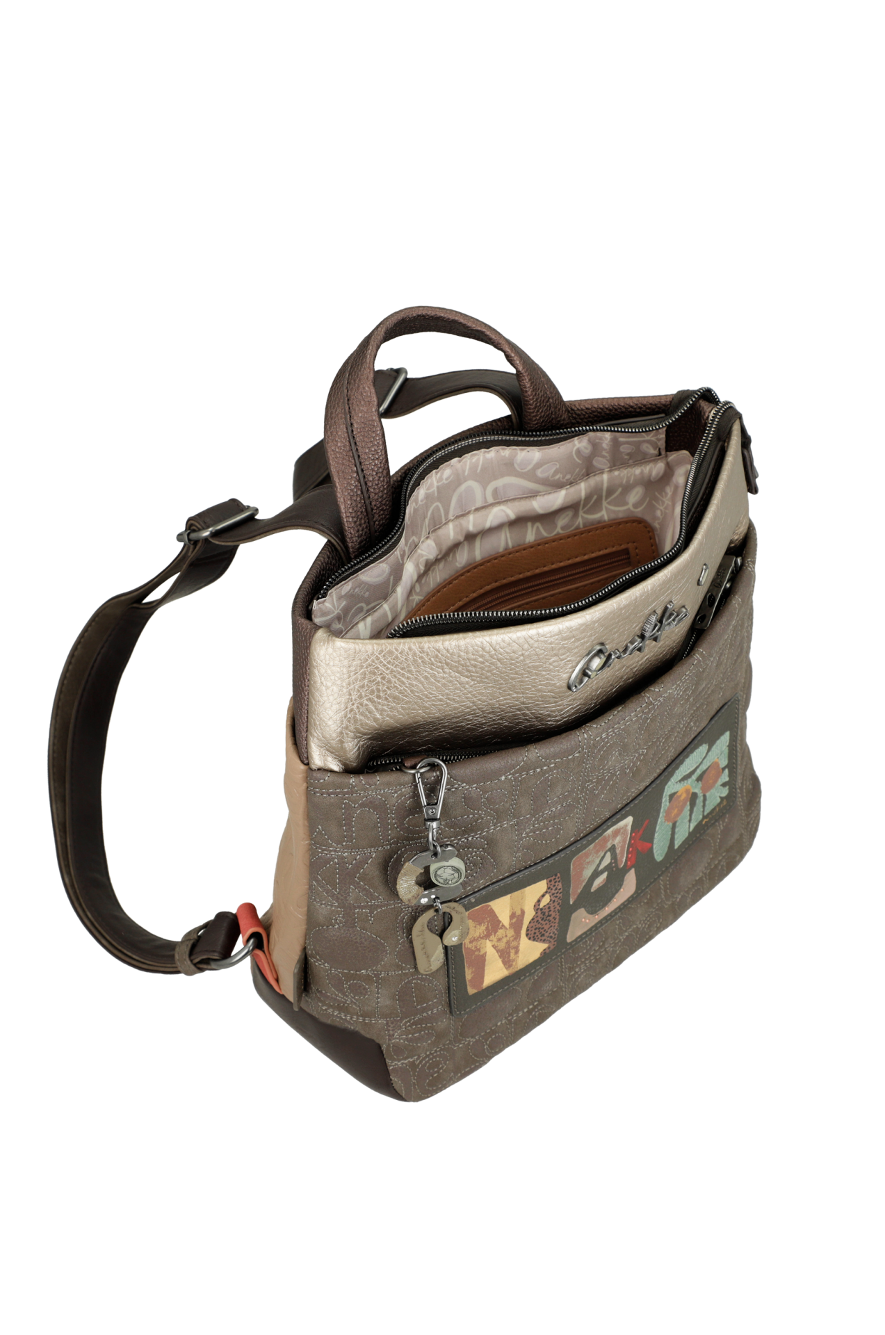 Bolsos: 1 bolso frontal, 1 atrás, int. 1 móvel e 1 zíper