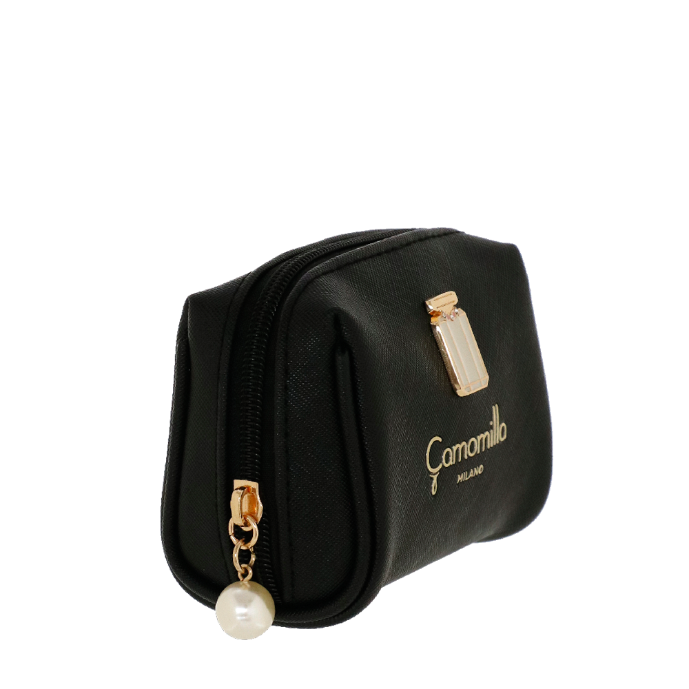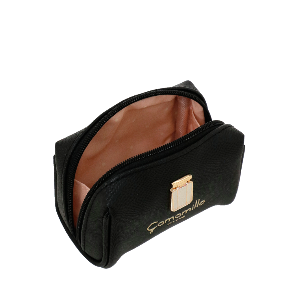 NECESSAIRE S MADAME A linha se distingue por um sofisticado rótulo de metal em forma de frasco de perfume. Esta linha está disponível em uma paleta de cores refinadas: rosa delicado, um elegante azul Tiffany e o inevitável preto clássico.... A etiqueta metálica, acabada com mestria e precisão, acrescenta um toque de luxo e distinção a cada peça, evocando a imagem de um perfume fino, símbolo de estilo e requinte. A escolha de cores, do rosa suave ao azul claro e ao preto profundo, oferece opções para todas as ocasiões, permitindo combinar a bolsa clutch com looks do dia a dia e looks noturnos.... Estas clutches não são apenas esteticamente agradáveis, mas também práticas e duráveis, ideais para quem procura combinar funcionalidade e elegância. Quer você a coloque em uma bolsa inteligente ou em uma bolsa de escritório, a bolsa clutch Madame irá acompanhá-lo adicionando um toque de classe à sua roupa. Prepare-se para chamar a atenção e definir seu estilo elegante. Em couro sintético com efeito saffiano e interiores estampados às bolinhas, pura elegância