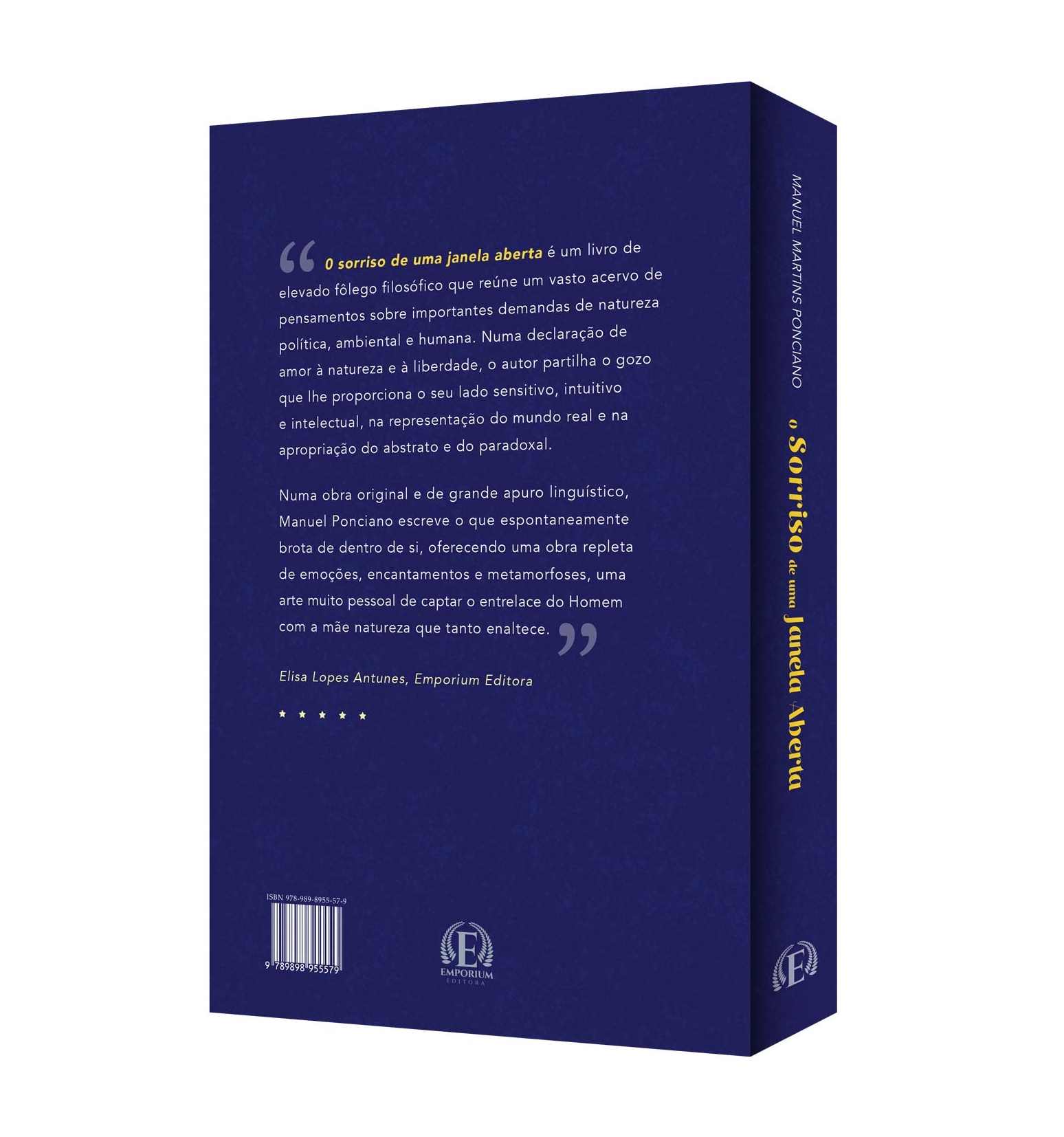 0 sorriso de uma janela aberta é um livro de elevado fôlego filosófico que reúne um vasto acervo de pensamentos sobre importantes demandas de natureza política, ambiental e humana. Numa declaração de amor à natureza e à liberdade, o autor partilha o gozo que lhe proporciona o seu lado sensitivo, intuitivo e intelectual, na representação do mundo real e na apropriação do abstrato e do paradoxal. Numa obra original e de grande apuro linguístico, Manuel Ponciano escreve o que espontaneamente brota de dentro de si, oferecendo uma obra repleta de emoções, encantamentos e metamorfoses, uma arte muito pessoal de captar o entrelace do Homem com a mãe natureza que tanto enaltece.
