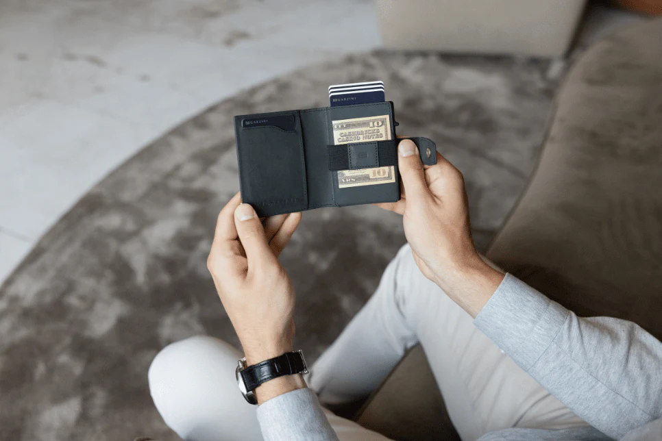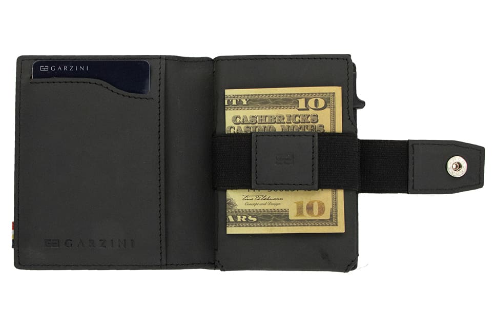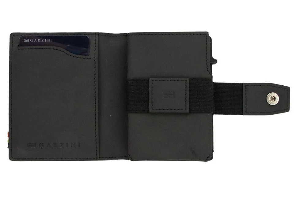 Nossa carteira de metal Garzini combina elegância e funcionalidade com tecnologia avançada de bloqueio de RFID.