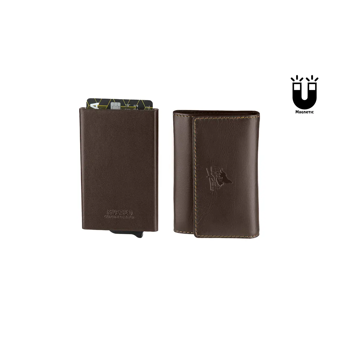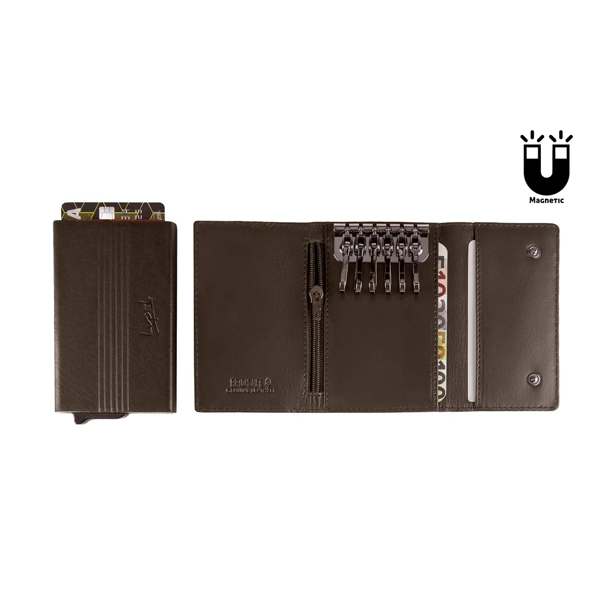 Porta-Cartões Metálico Anti-RFID e Porta-Chaves em Pele Castanho