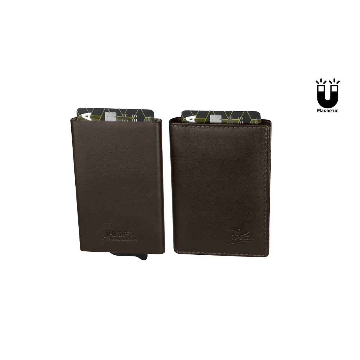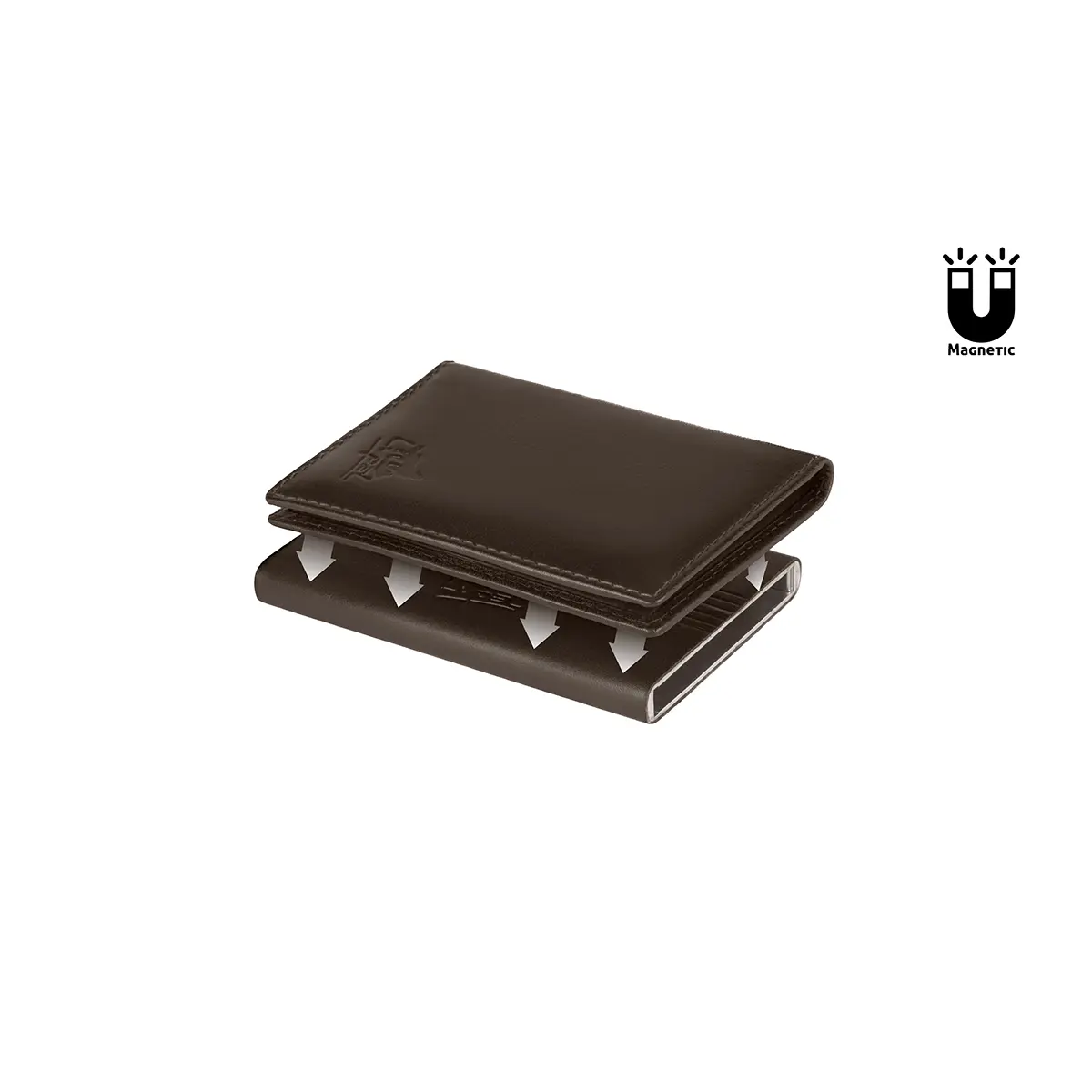 Porta-Cartões Metálico e Carteira em Pele Anti-RFID Castanho