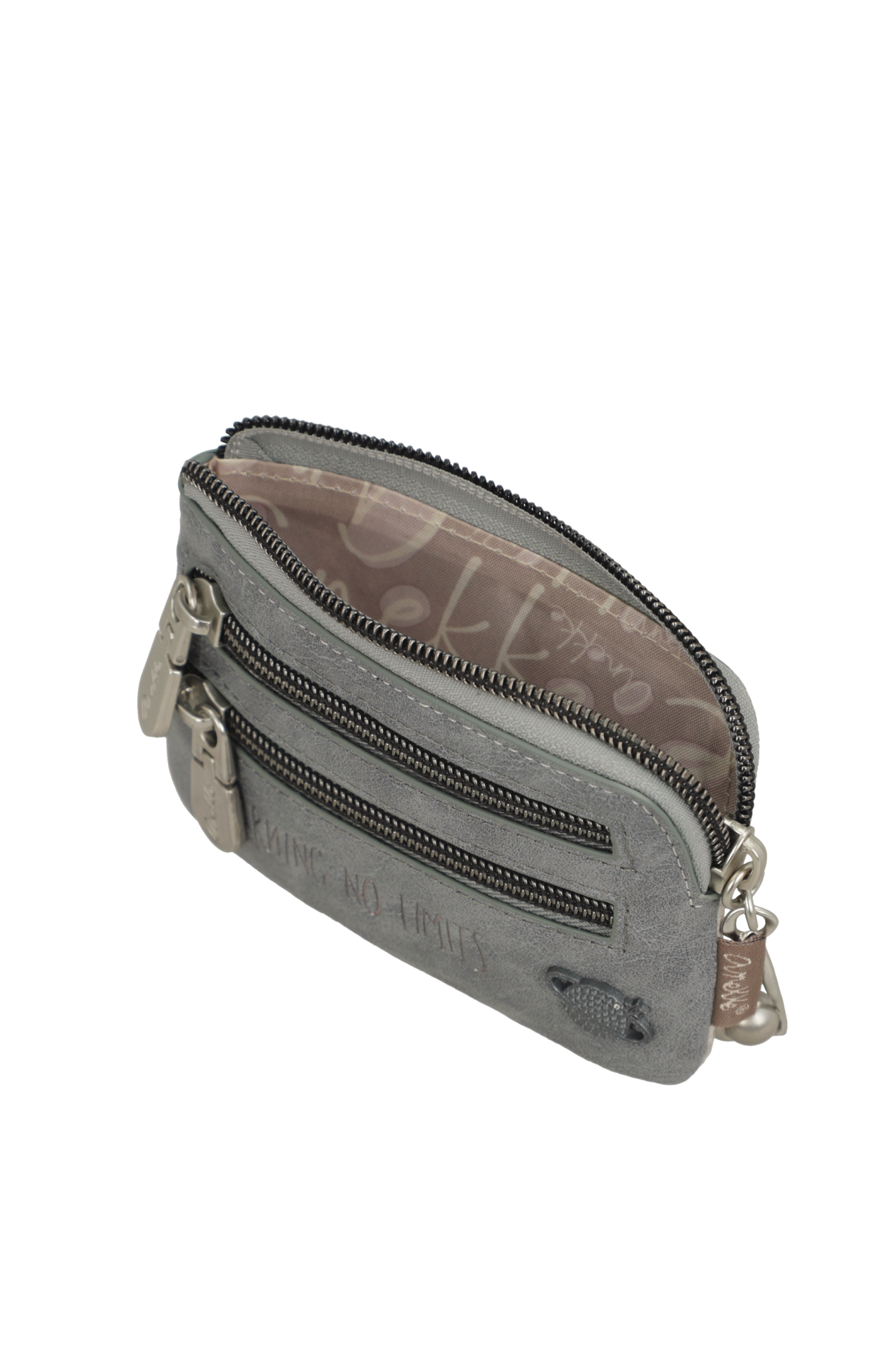 Tipo de fechamento: Zíper Bolsos: 2 Bolsos traseiros Tipo de alça: Ele não tem Medições (Comprimento x Altura x Largura): 13 cm / 9 cm / 2 cm Composição interior: 100% POLIÉSTER Composição exterior: 100% PU Peso: 80 g