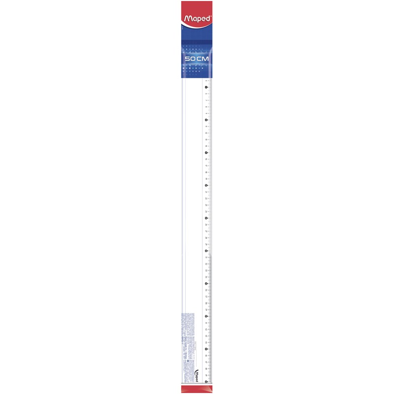 Régua Maped transparente de 50 cm em embalagem azul e vermelha