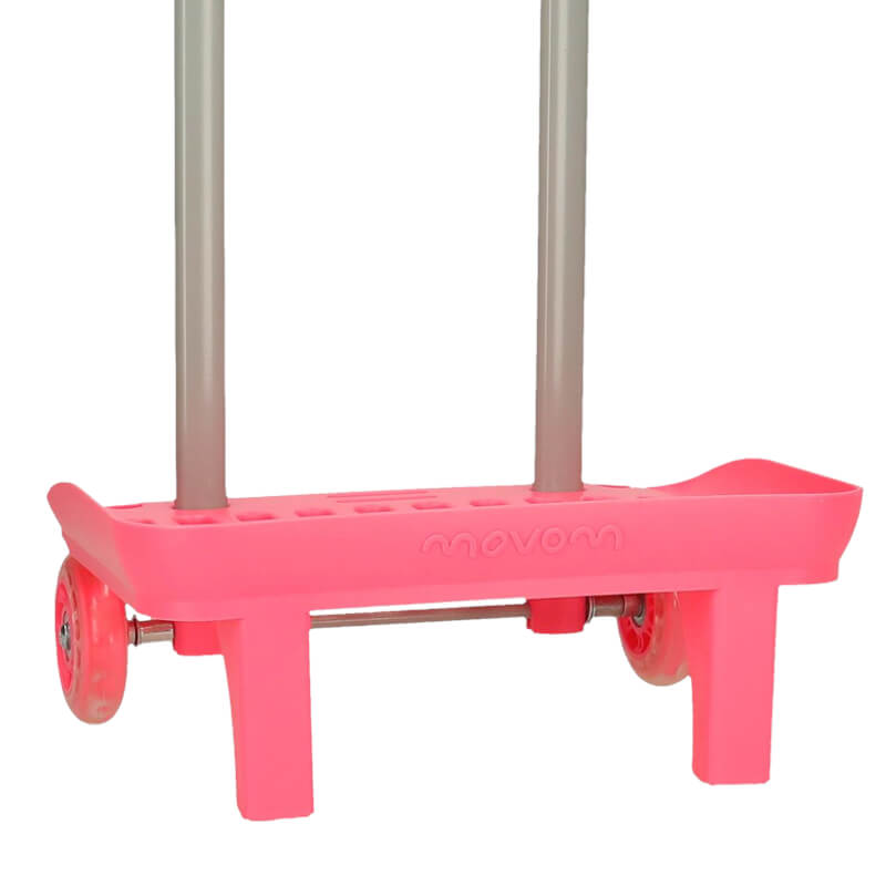 Agora podes transportar a tua mochila preferida com maior comodidade. Com este carro escolar Movom que tem rodas resistentes e silenciosas, além de uma alça extensível para se adaptar à tua altura, será mais fácil levar livros e material escolar para a escola. Utiliza o sistema de fixação Magic Fix e o suporte da parte superior para garantir que a mochila é segura ao carro.