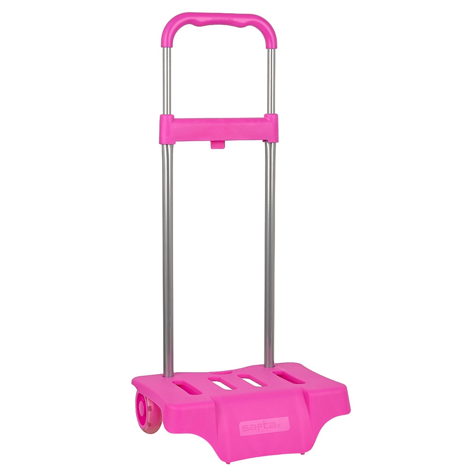O Safta Trolley Fucsia é um carrinho de transporte universal projetado para mochilas escolares, focado em reduzir o esforço físico das crianças ao transportar livros. Este modelo destaca-se pelo seu design leve e pela cor azul claro vibrante.