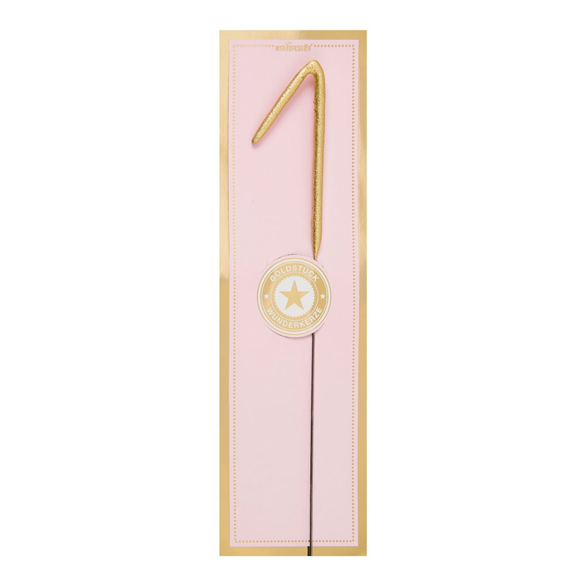 Wondercandle® Número 1 Gold, uma vela de faíscas (sparkler) em formato de número 1.