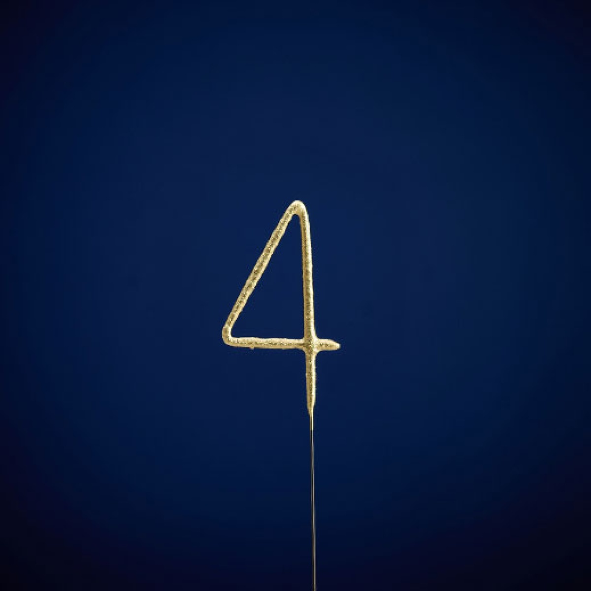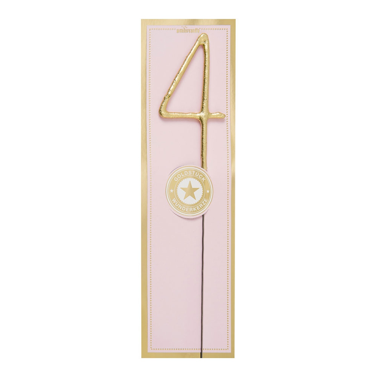 Wondercandle® Número 4 Gold, uma vela de faíscas (sparkler) em formato de número 4.